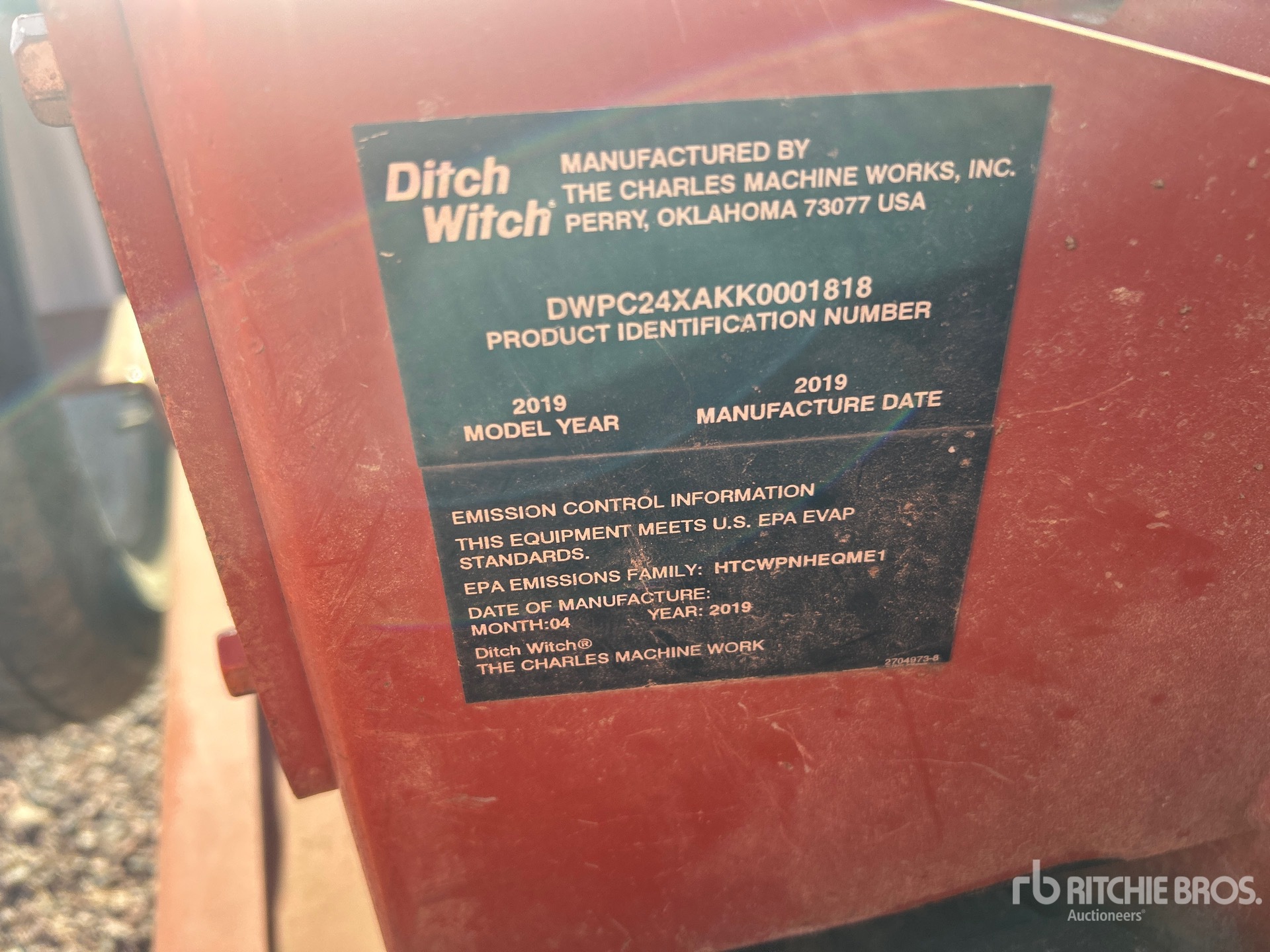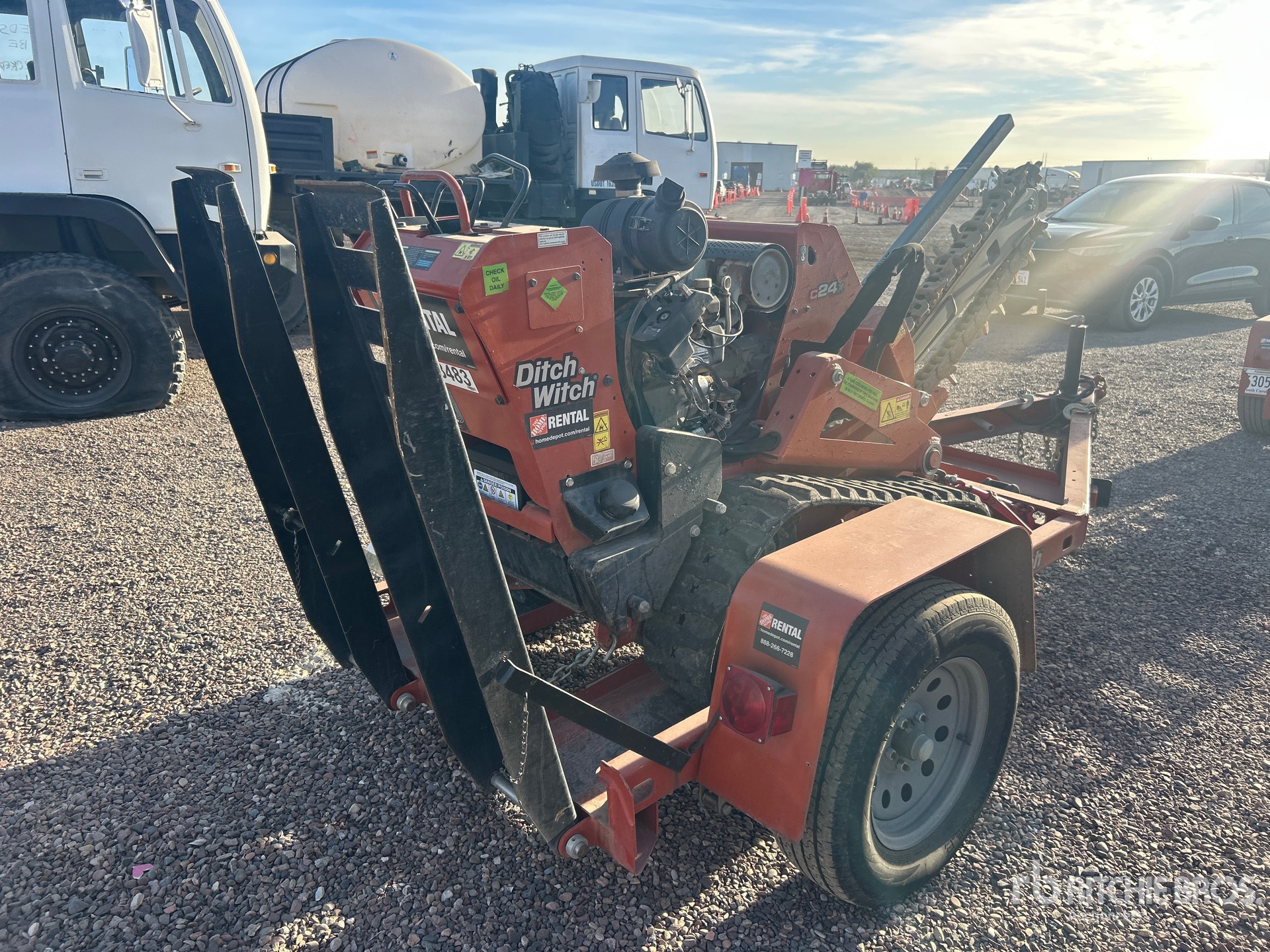 2018 US EPA Label, Honda Gasoline Engine, 4 ft 8 in Cable Plow, 8 in Rubber Tracks, S/A Trailer w/ S/N- 1DSB11F6K1703870, Ball Hitch, Electric Brakes