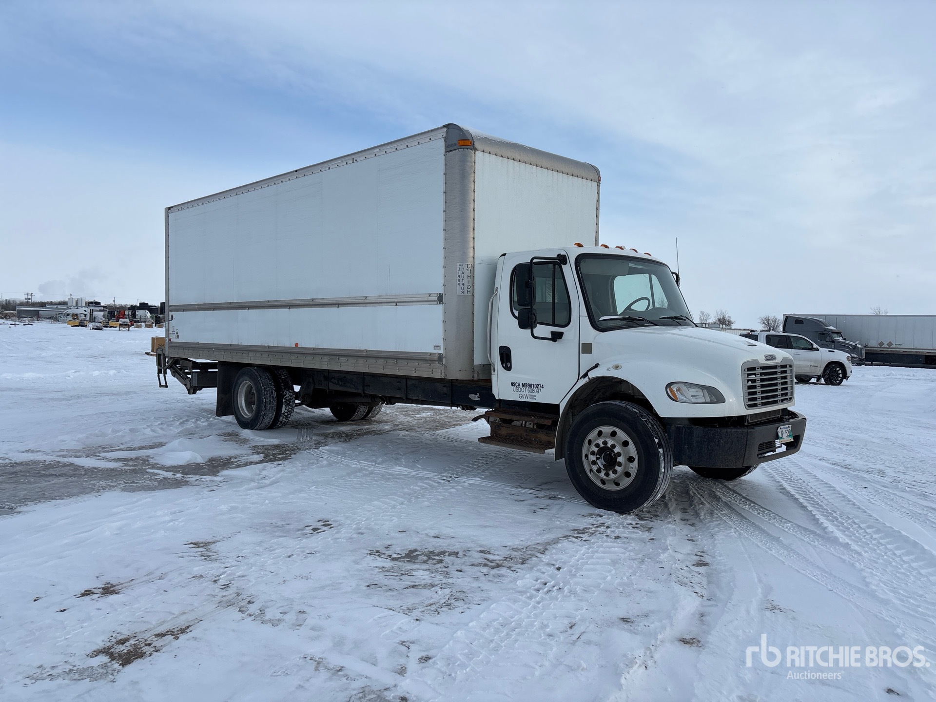 Cummins Diesel 220 hp Engine, 2017 US EPA Label, CARB Compliant, Requires Diesel Exhaust Fluid, 7203 Engine hrs, Eaton Fuller Automatic Transmission, 12000 lb Front Axle, 21000 lb Rears, 33000 lb GVWR, Air Ride Cab, Aluminum Outer Wheels, 11R22.5, Airliner Air Ride Suspension, 270 in Wheelbase, 26 ft x 102 in Wide x 102 in High Body, Walk-Up Ramp, Liftgate