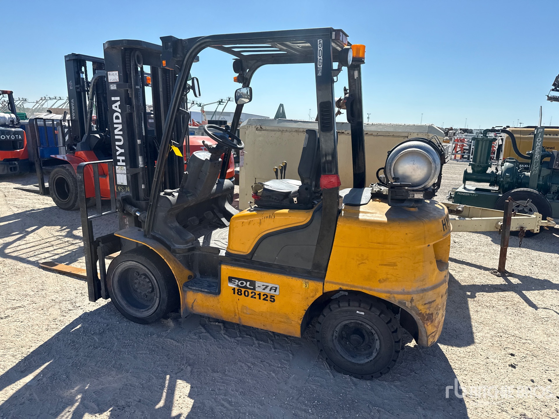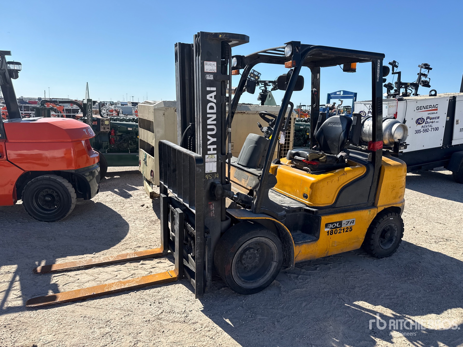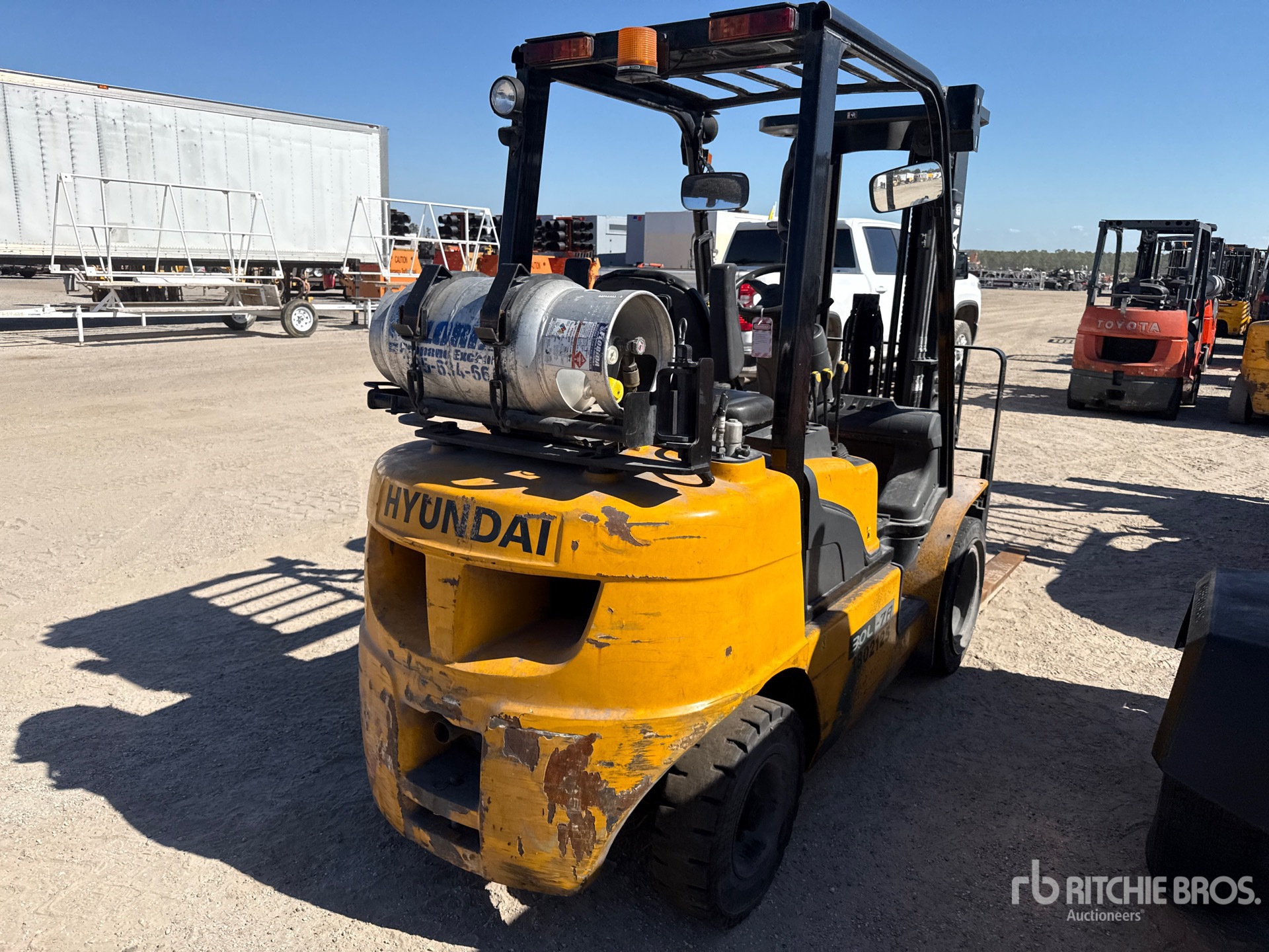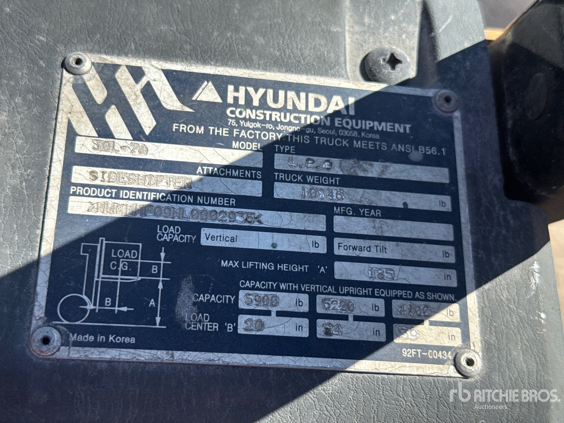 3 Stage Mast, 185 in Max Lift Height, 90.5 in Lowered Mast Height, 46 in Forks, Side Shift, 2019 US EPA Label, Hyundai 4 Cylinder 2.4 L LPG Engine