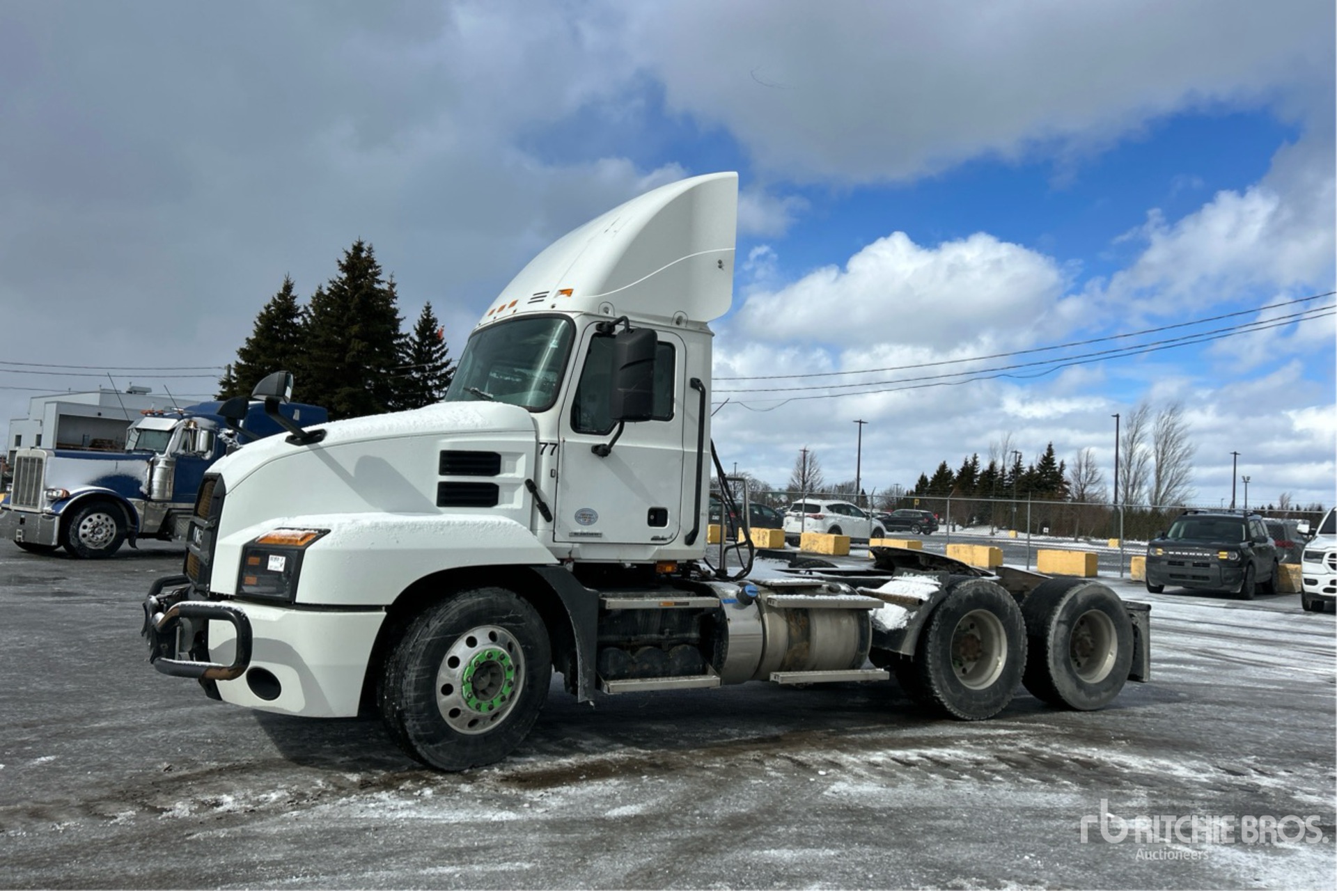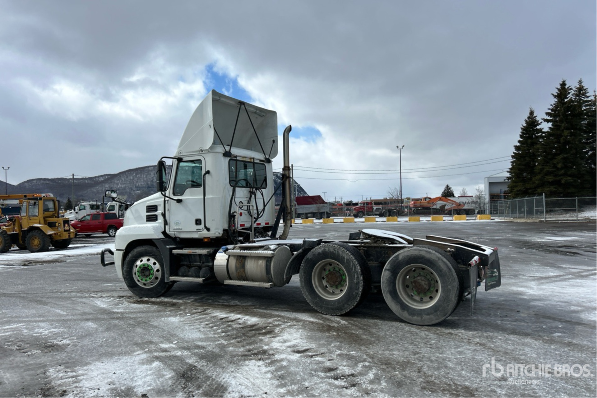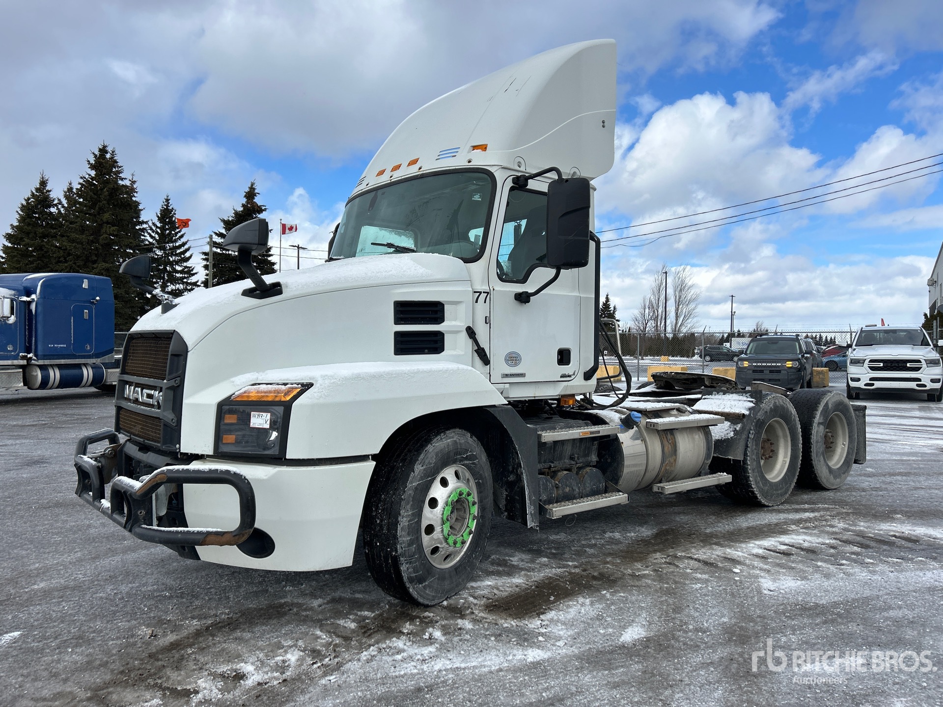 Mack MP7 Engine, 2018 US EPA Label, Automatic Transmission, 5400 kg Front Axle, 18200 kg Rears, 23600 kg GVWR, Engine Brake, Differential Lock, 182 in Wheelbase, Air Suspension, Aluminum Wheels, 11R22.5 Front Tires, 445/50R22.5 Super Singles Rear Tires, Ballrace 5th Wheel, Dual Fuel Tanks