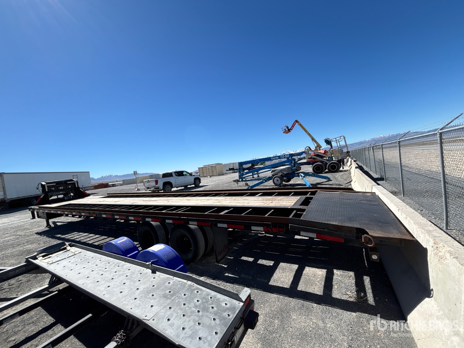 Les mesures sont fournies à titre d'estimation uniquement. Les dimensions réelles sous charge peuvent varier en fonction de la hauteur du camion/de la remorque et de la configuration/position de la machine chargée. Il incombe à l'acheteur de mesurer toutes les charges avant de quitter notre site de vente pour s'assurer que la charge peut être transportée en toute sécurité. Toutes les mesures doivent être vérifiées par l'acheteur. Ne vous fiez pas à ces mesures pour le transport.
