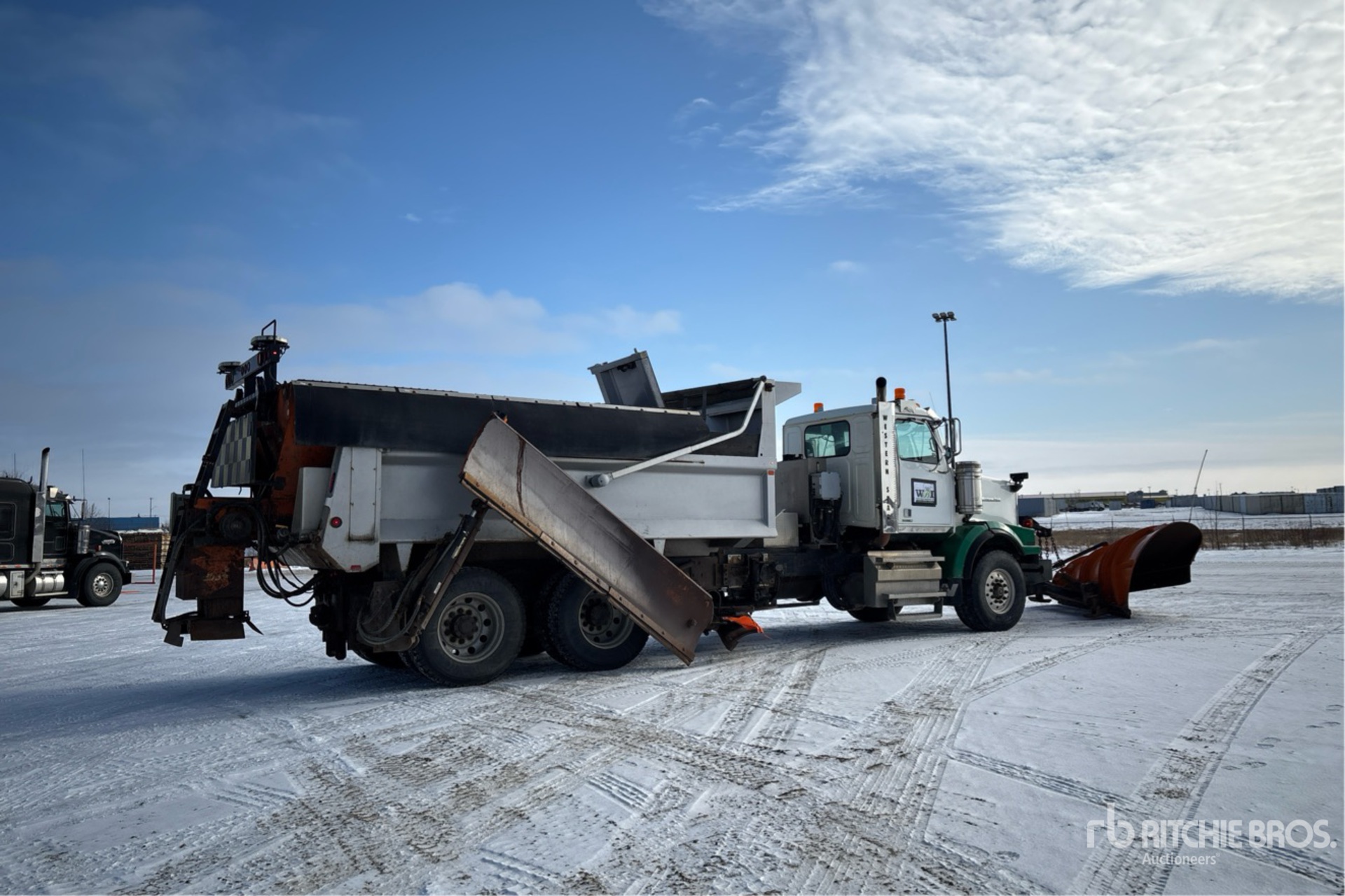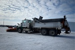 Cummins X15 6 Cylinder 15 L Diesel 485 hp Engine, 2018 US EPA Label, 8287 Engine hrs, Engine Brake, Allison 4500 Automatic Transmission, Double Differential Locks, 20000 lb Front Axle, 46000 lb Rears, Meritor RT-46-164 Drive Axles, 5.38:1 Axle Ratio, 66000 lb GVWR, 425/65R22.5 Front Tires, 11R24.5 Rear Tires, TufTrac Suspension, 259 in Wheelbase, PTO, 11 ft 1-Way Plow, 12 ft Snow Wing, 12 ft Underbody Scraper, Steel Slide-In Spreader, Pre-Wet System, 1 Spinners, In-Cab Controls, 16 ft Long x 4 ft High Steel Body