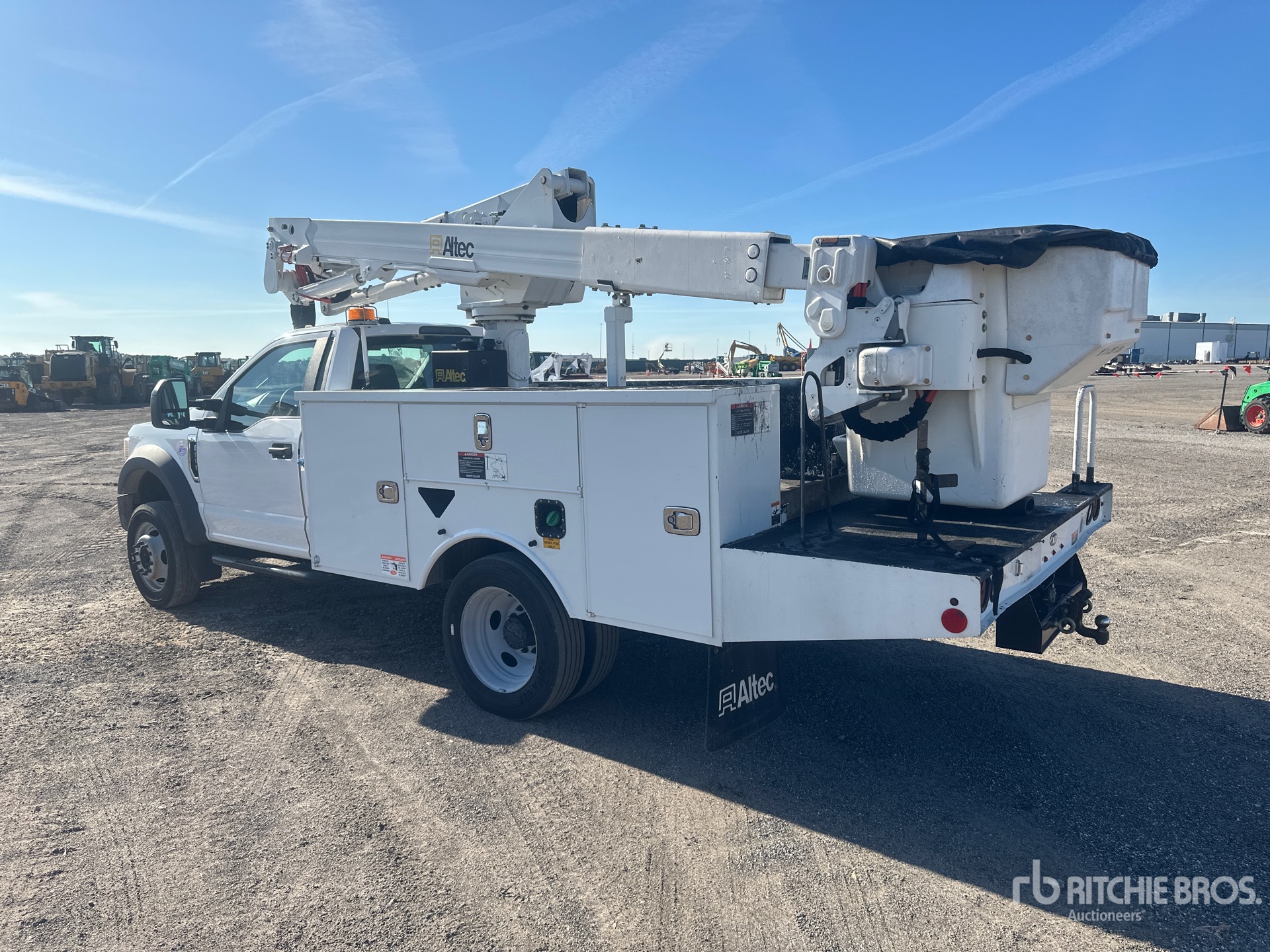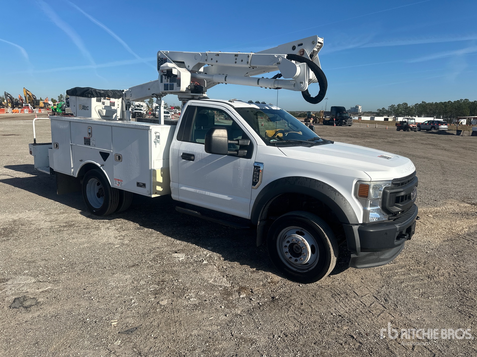 V8 6.7 L Diesel Engine, 2020 US EPA Label, Requires Diesel Exhaust Fluid, 11262 Engine hrs, Automatic Transmission, 7000 lb Front Axle, 13660 lb Rears, 18000 lb GVWR, 225/70R19.5, Spring Suspension, 148 in Wheelbase, PTO, 400 lb Capacity, Center Mounted, Insulated One-Person Telescopic Boom, Utility Body, 12 ft x 94 in Bed, Pintle Hitch