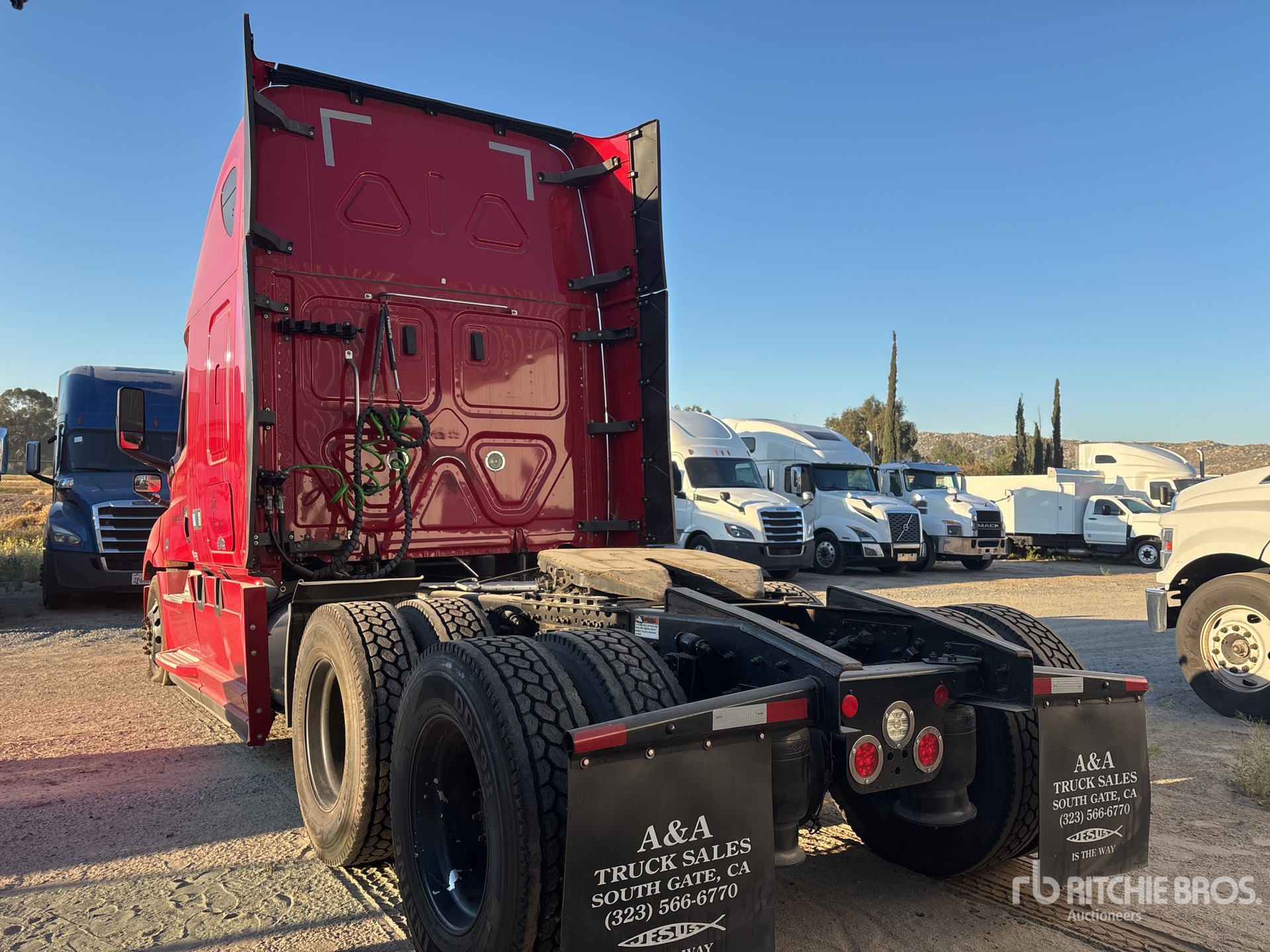 Detroit DD15 Engine, 12366 Engine hrs, 12350 lb Front Axle, 40000 lb Rears, 52350 lb GVWR, Engine Brake, 72 in High Rise Sleeper Cab, Bunk Beds, 228 in Wheelbase, Air Suspension, Aluminum Wheels, 295/75R22.5, Air Sliding 5th Wheel, Dual Fuel Tanks