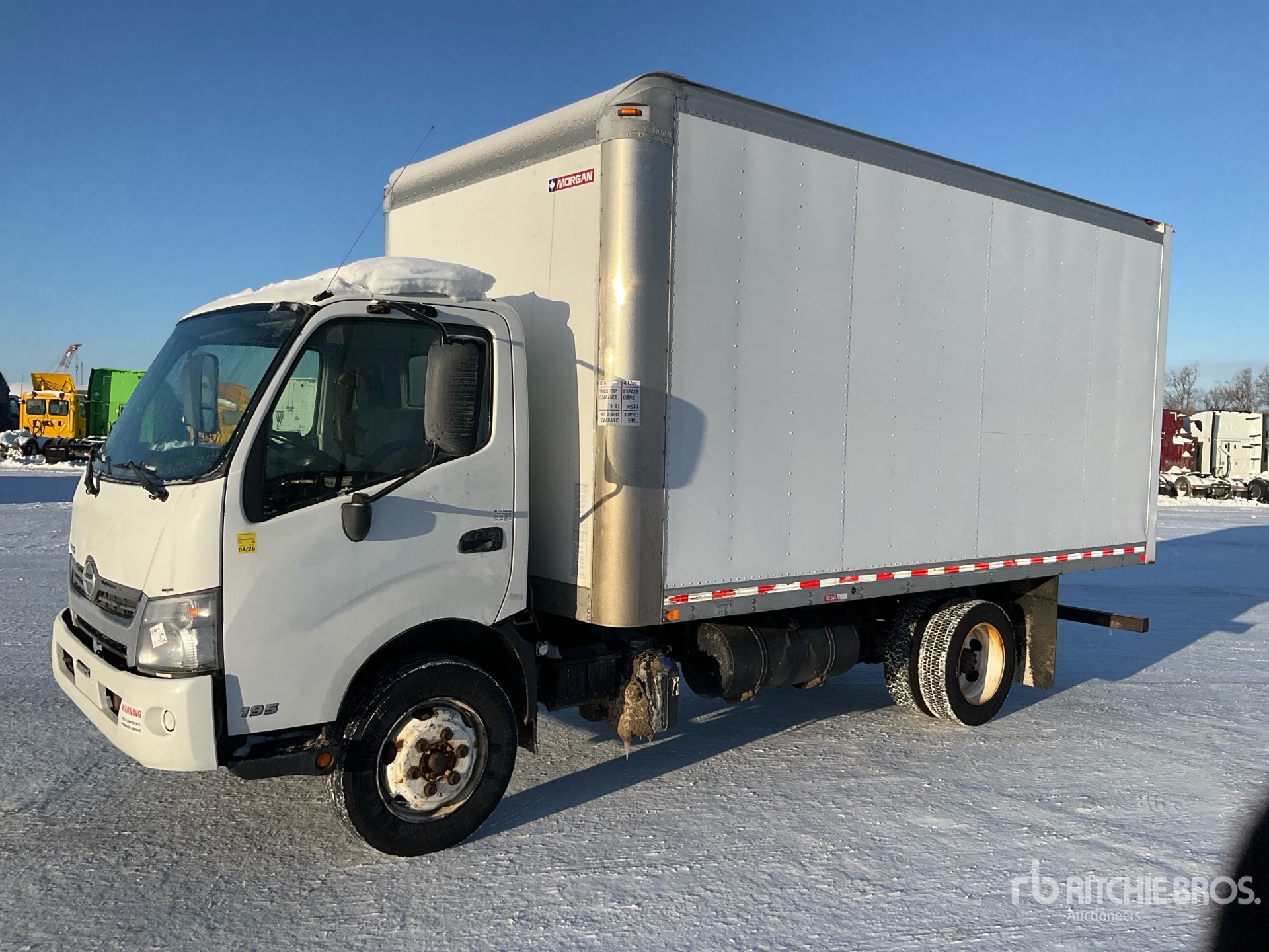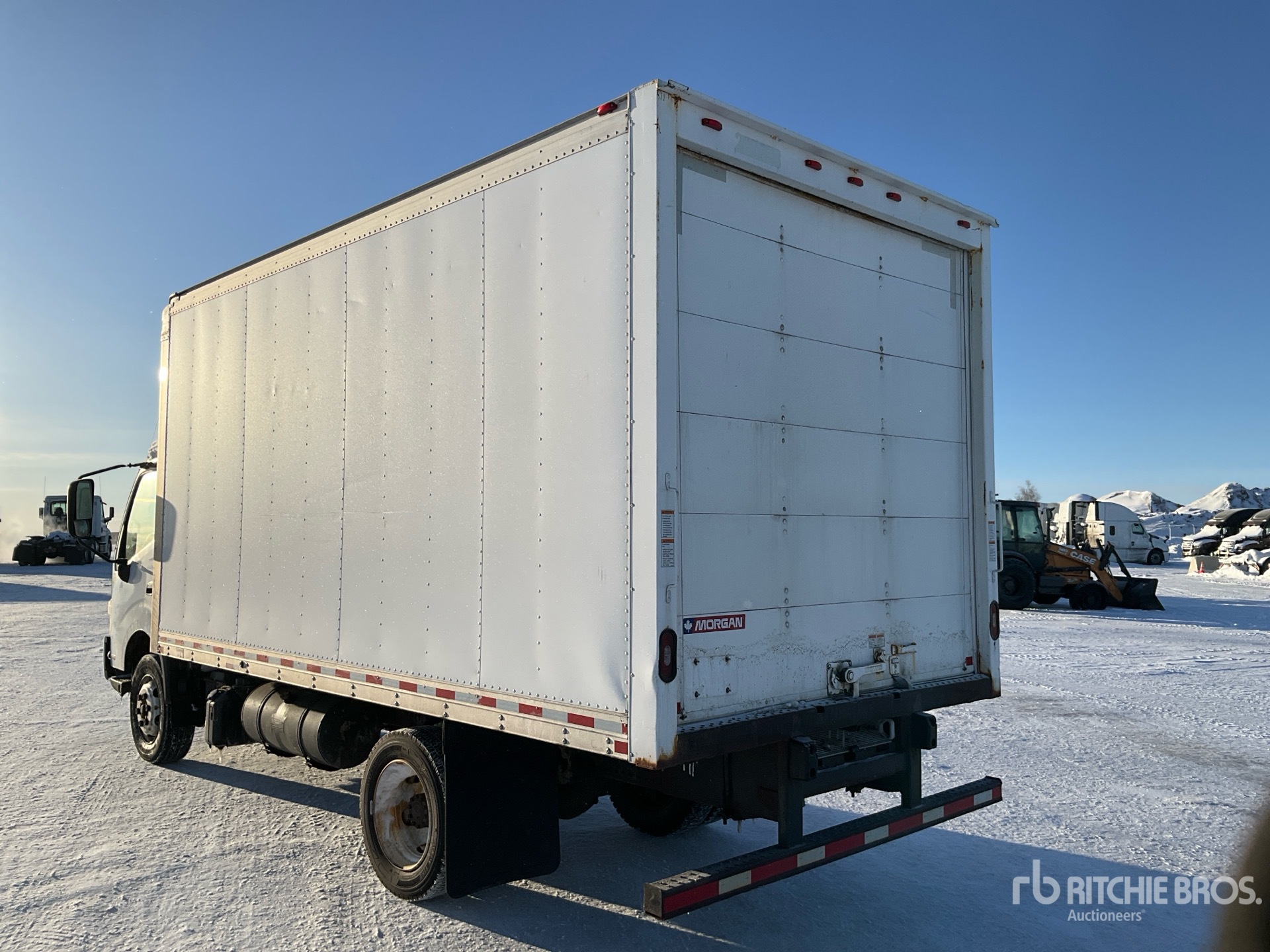 Hino J05E-TP 4 Cylinder Diesel 210 hp Engine, 2019 US EPA Label, Automatic Transmission, 7270 lb Front Axle, 13660 lb Rears, 19500 lb GVWR, 225/70R19.5, Spring Suspension, 150 in Wheelbase, Morgan 16 ft x 96 in Wide x 90 in High Body, Walk-Up Ramp