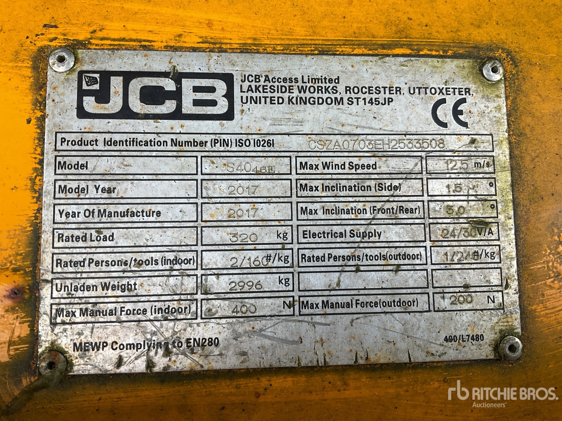 L'équipement n'a pas été testé avec charge ou utilisé dans toutes les situations applicables. Nous ne garantissons en aucun cas le bon fonctionnement de l'équipement conformément aux spécifications du fabricant. Aucune inspection n'a été effectuée pour vérifier tout aspect fonctionnel, sauf indication expresse dans le présent document. Seule une sélection de photos des composants individuels du train roulant sont à disposition, et peut ne pas indiquer l'état de l'ensemble de celui-ci.