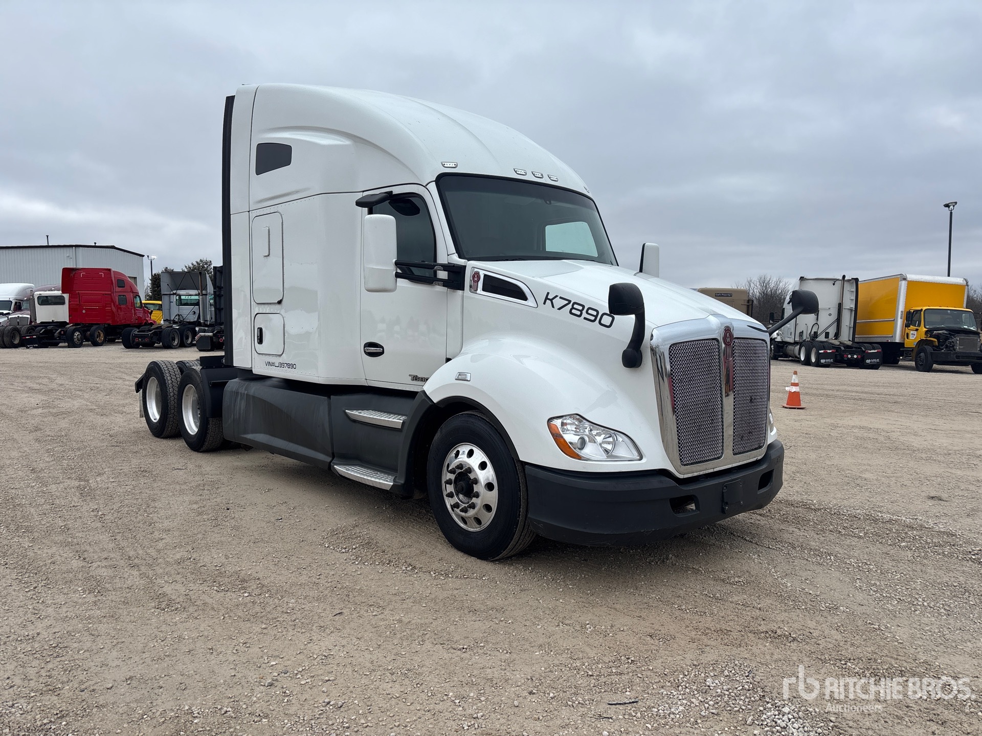 Paccar MX-13 455 hp Engine, 2019 US EPA Label, 18845.2 Engine hrs, Automated Transmission, 12350 lb Front Axle, 40000 lb Rears, 52350 lb GVWR, Engine Brake, 72 in High Rise Sleeper Cab, Bunk Beds, 227 in Wheelbase, Air Suspension, Aluminum Outer Wheels, 295/75R22.5 Front Tires, 295/75R22.5 Rear Tires, Air Sliding 5th Wheel, Dual Fuel Tanks