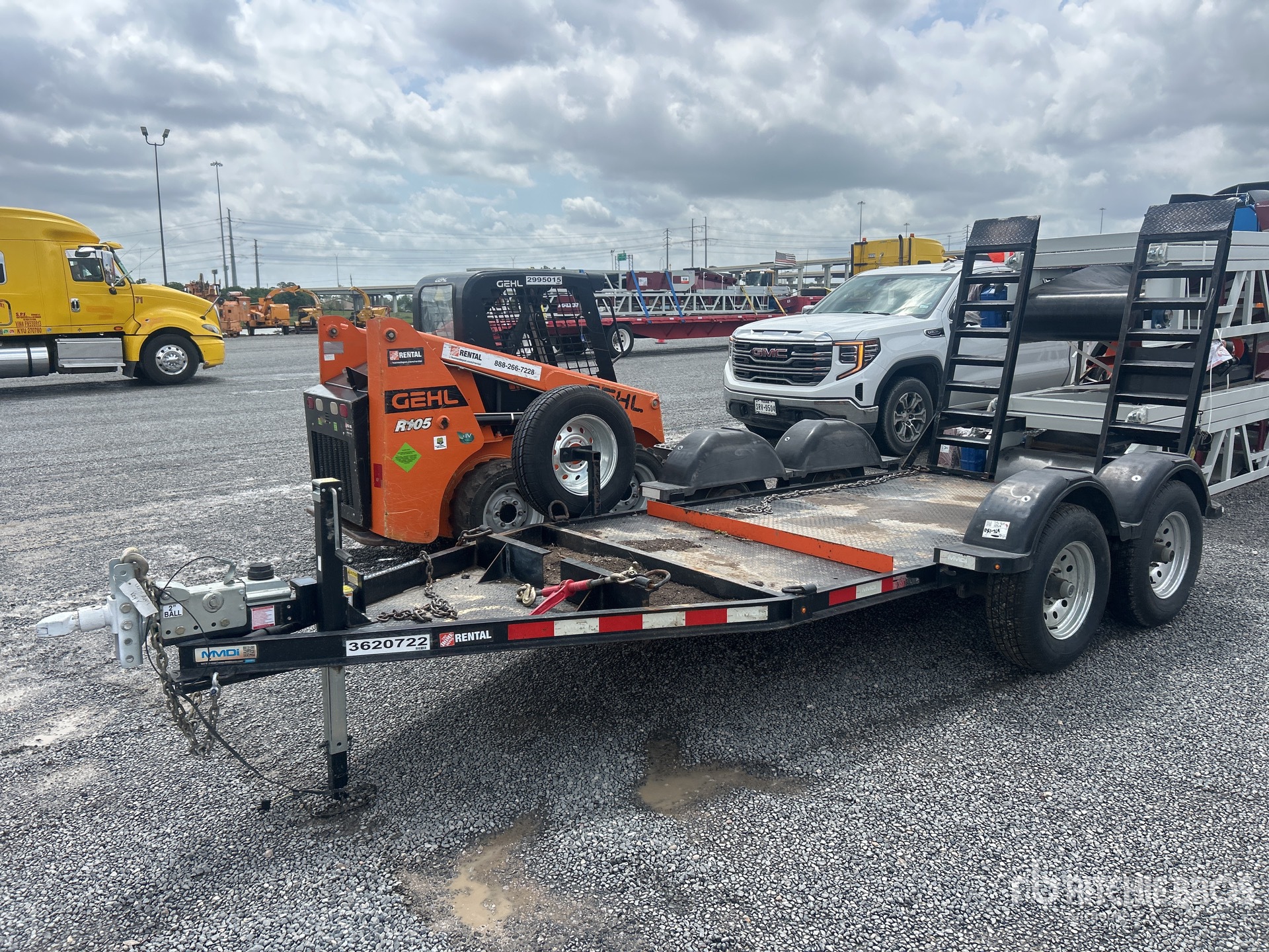 Les mesures sont fournies à titre d'estimation uniquement. Les dimensions réelles sous charge peuvent varier en fonction de la hauteur du camion/de la remorque et de la configuration/position de la machine chargée. Il incombe à l'acheteur de mesurer toutes les charges avant de quitter notre site de vente pour s'assurer que la charge peut être transportée en toute sécurité. Toutes les mesures doivent être vérifiées par l'acheteur. Ne vous fiez pas à ces mesures pour le transport.