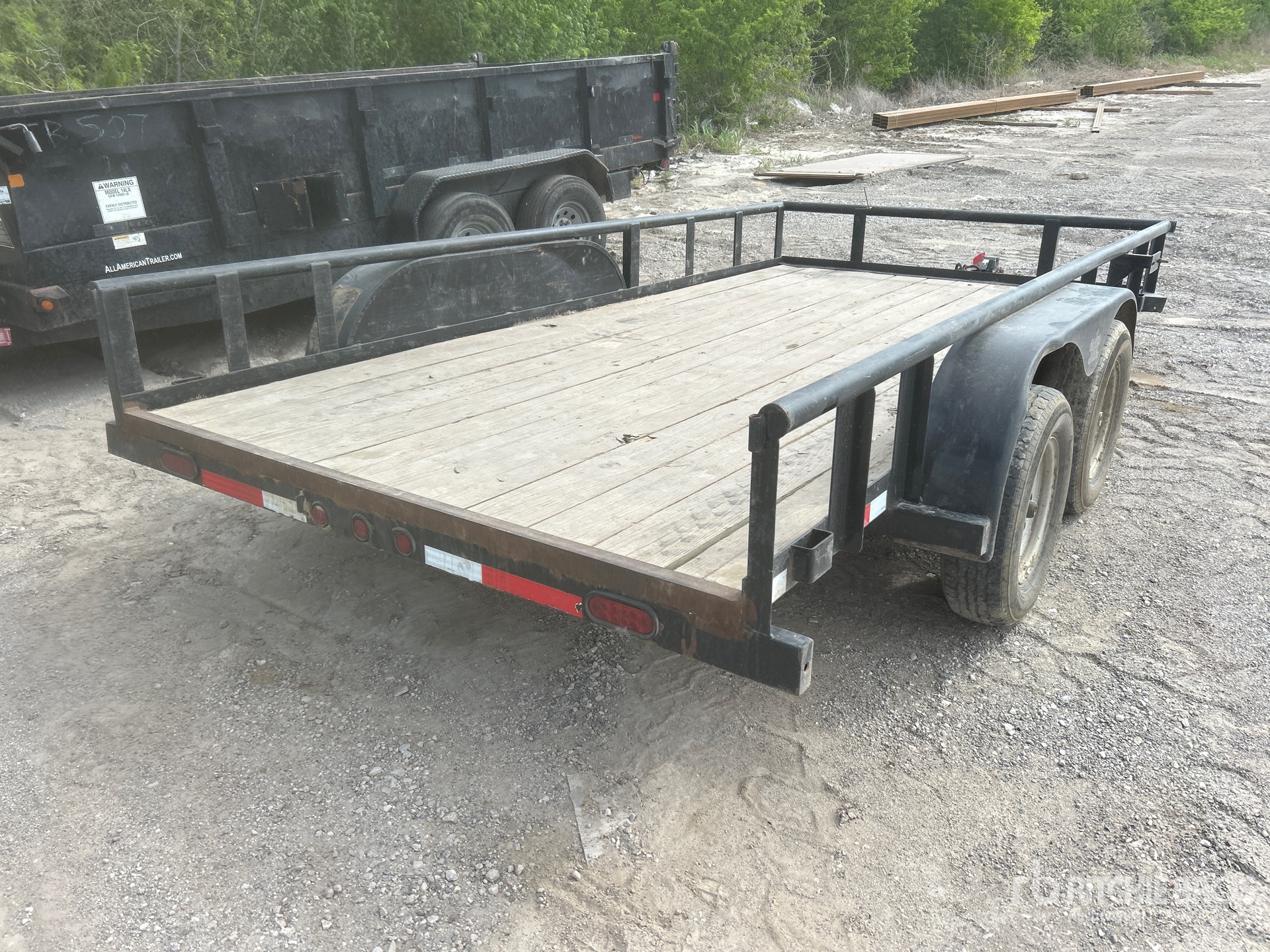 Ball Hitch, Spring Suspension, 82 in Deck Width, 86 in Overall Width, Wood Flooring, 205/75R15 Tires, 7700 lb GVWR