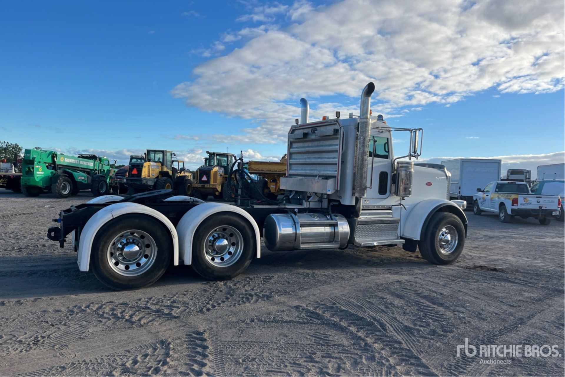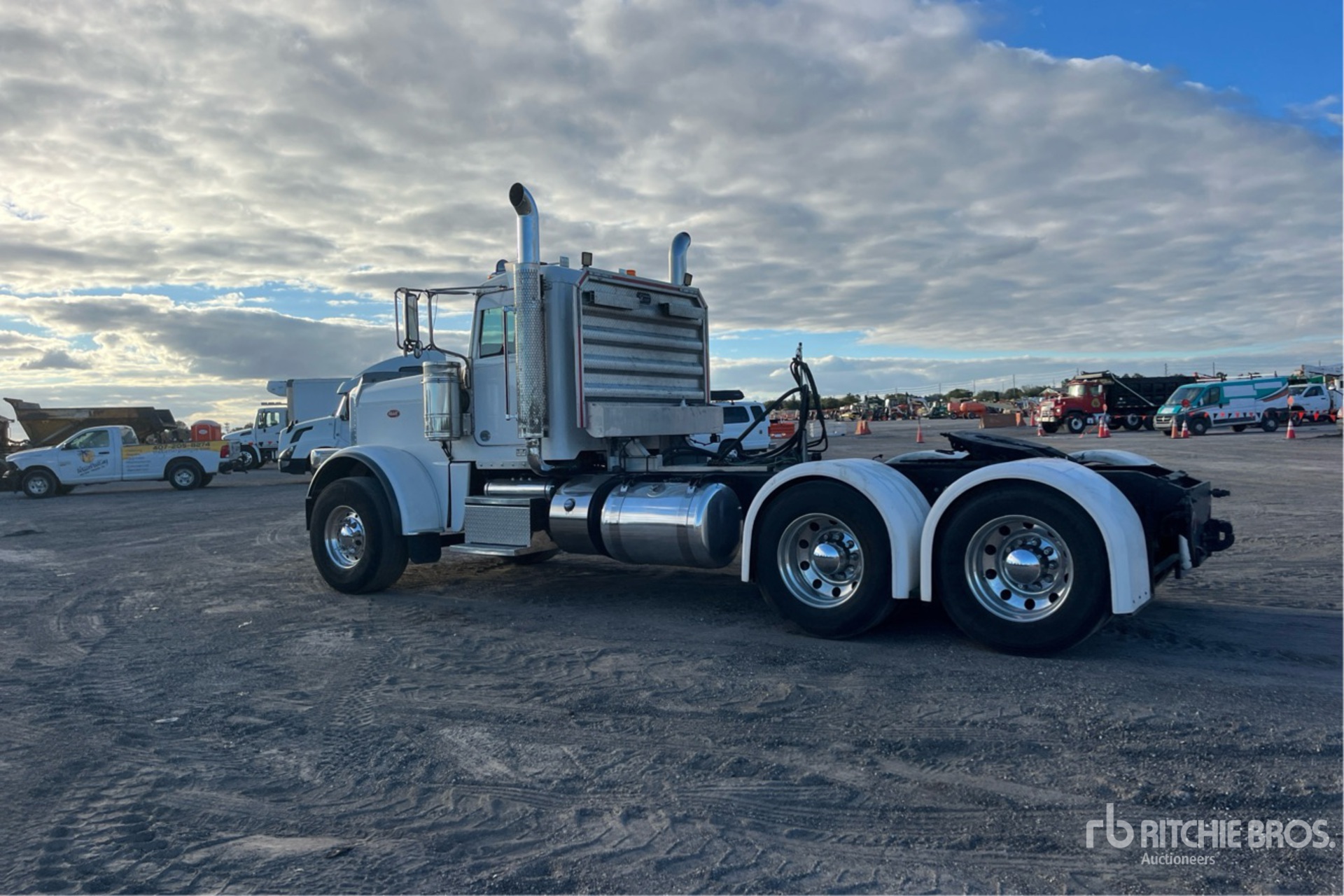 Cummins X15 500 hp Engine, 2019 US EPA Label, 18267 Engine hrs, Eaton Fuller 13-Speed Manual Transmission, 13200 lb Front Axle, 46000 lb Rears, 59200 lb GVWR, Engine Brake, 256 in Wheelbase, Aluminum Outer Wheels, 425/65R22.5 Front Tires, 11R24.5 Rear Tires, Wet Kit, PTO, Air Sliding 5th Wheel, Dual Fuel Tanks, Headache Rack