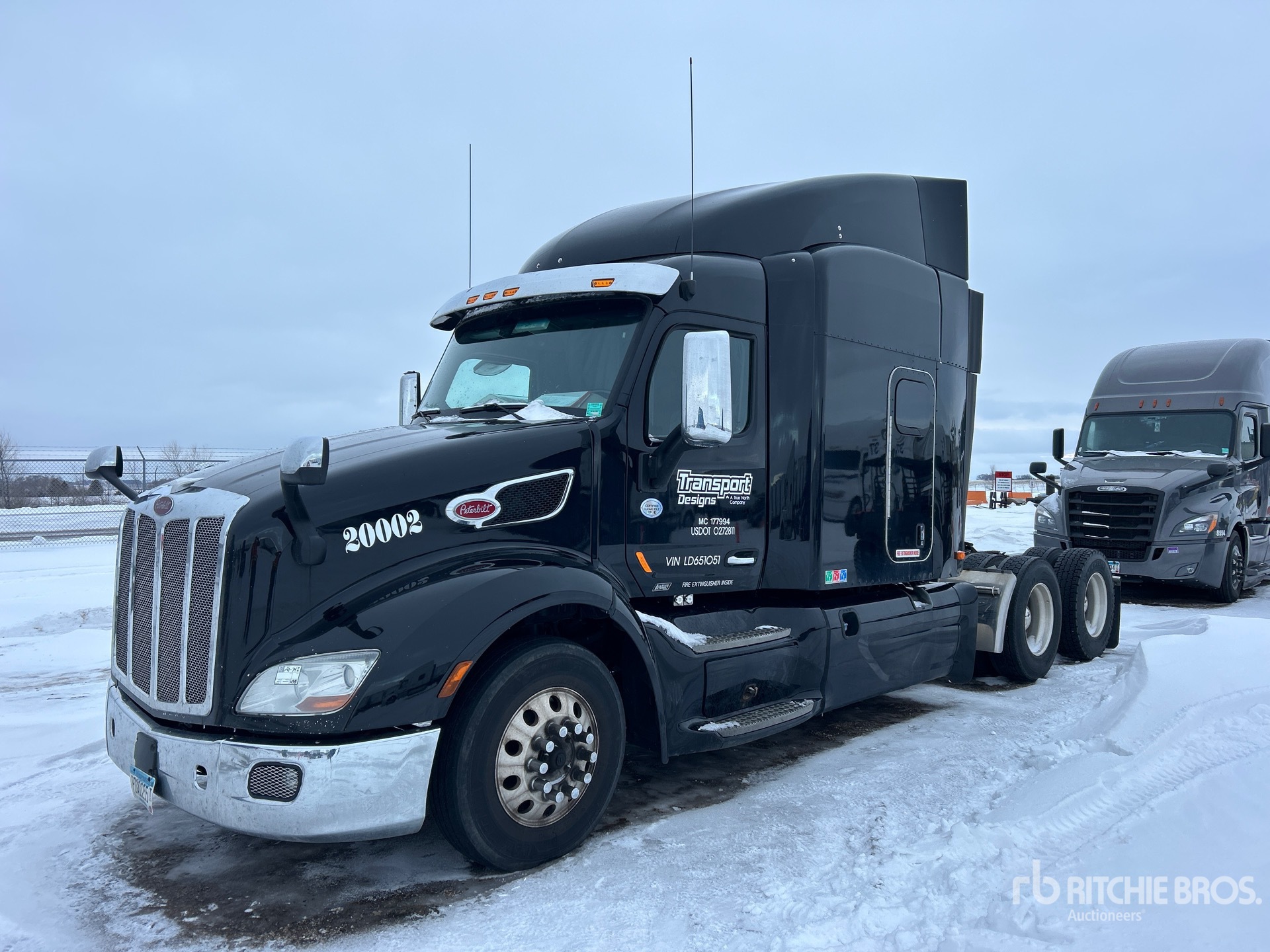 Located in Lane 26 Spot 142, Cummins X15 450 hp Engine, 2019 US EPA Label, 19726 Engine hrs, Automated Transmission, 13200 lb Front Axle, 40000 lb Rears, 53200 lb GVWR, Engine Brake, 58 in Mid Roof Sleeper Cab, 227 in Wheelbase, Air Suspension, Aluminum Wheels, 295/75R22.5, Air Sliding 5th Wheel, Dual Fuel Tanks