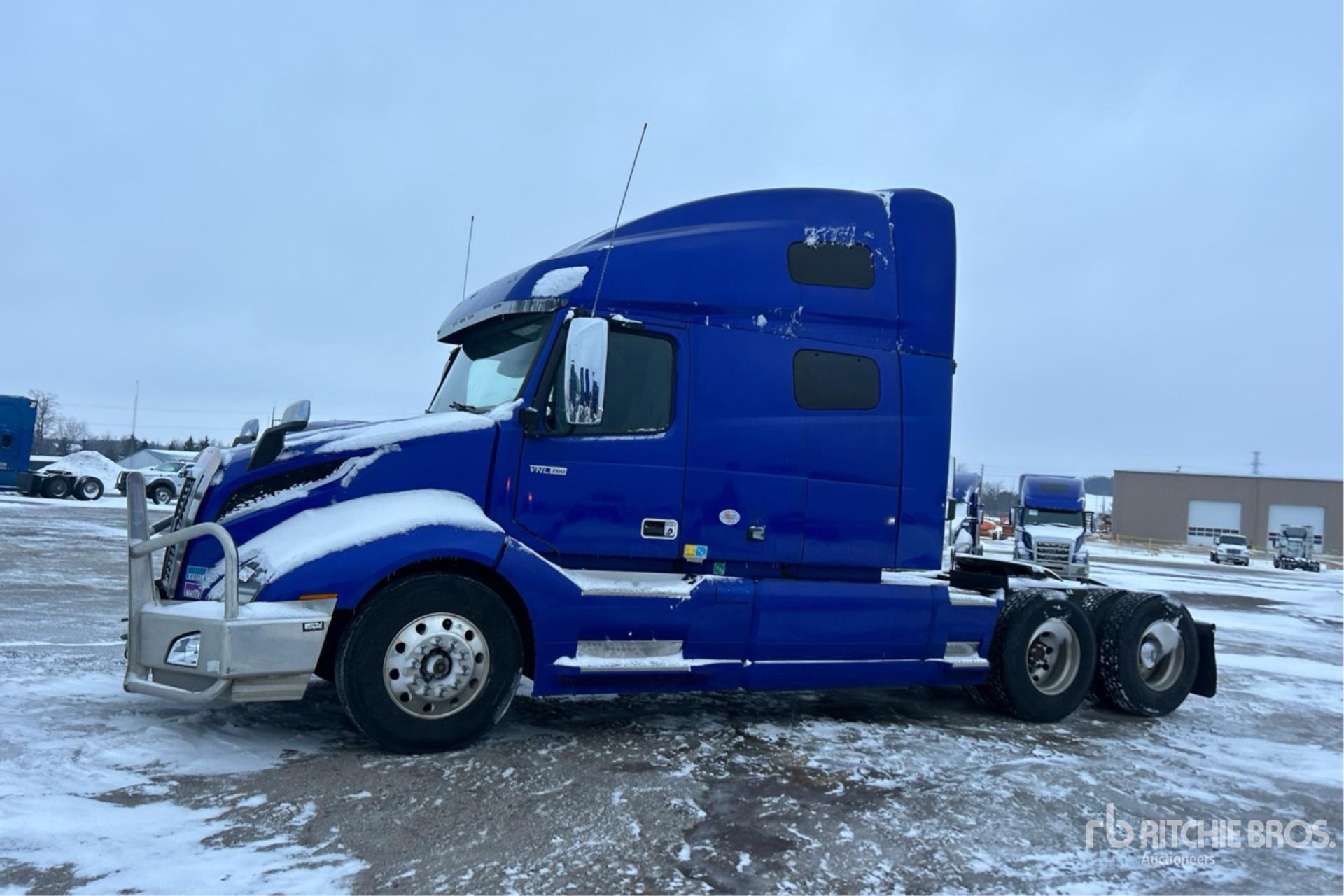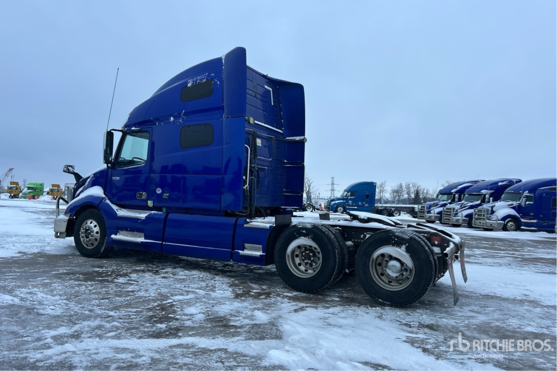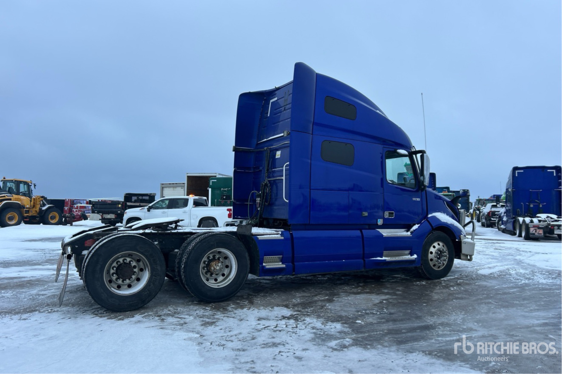 Volvo D13 Engine, 23730 Engine hrs, Volvo ATO2612F 12-Speed Automated Transmission, 12500 lb Front Axle, 40000 lb Rears, 52500 lb GVWR, Engine Brake, Differential Lock, 70 in High Rise Sleeper Cab, Bunk Beds, 217 in Wheelbase, Air Suspension, Aluminum Wheels, 11R22.5, Air Sliding 5th Wheel, Dual Fuel Tanks