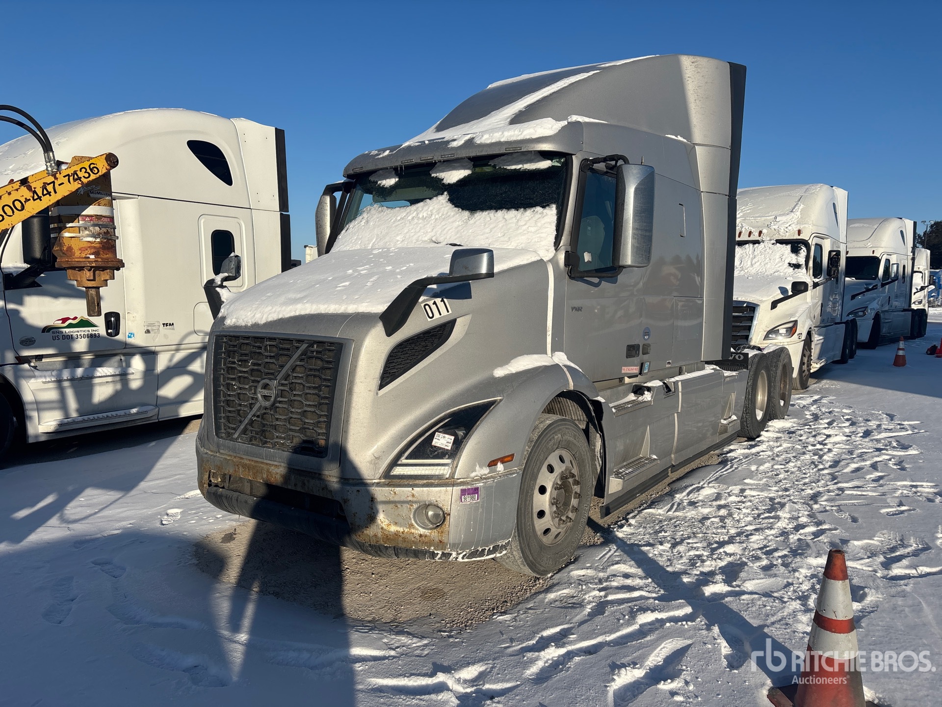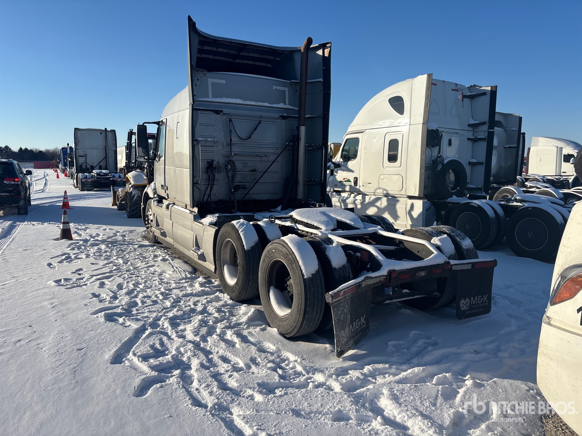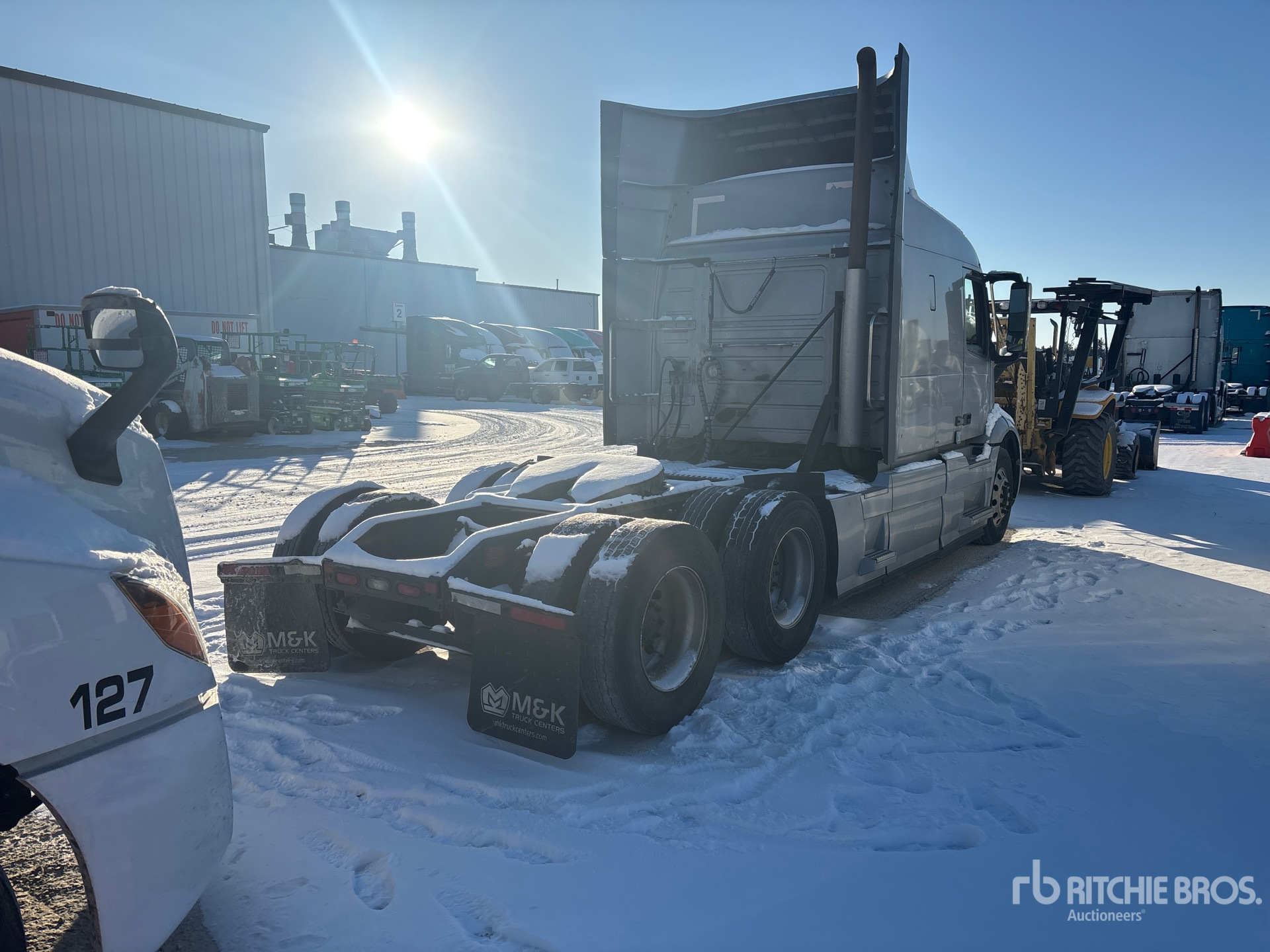 Volvo D13 Engine, Volvo AT2612F 12-Speed Automated Transmission, 13200 lb Front Axle, 38000 lb Rears, 51200 lb GVWR, Engine Brake, 61 in Mid Roof Sleeper Cab, Bunk Beds, 220 in Wheelbase, Air Suspension, Aluminum Wheels, 295/75R22.5, Air Sliding 5th Wheel, Dual Fuel Tanks