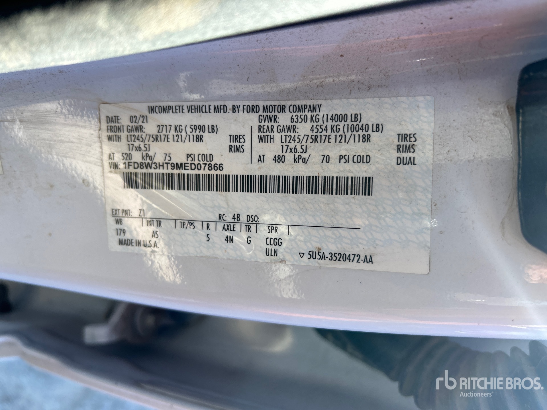 Located in Lane 11 Spot 6, V8 6.7 L Diesel Engine, 2021 US EPA Label, Requires Diesel Exhaust Fluid, 9780 Engine hrs, Automatic Transmission, 5990 lb Front Axle, 10040 lb Rears, 14000 lb GVWR, 245/75R17, Spring Suspension, 179 in Wheelbase, 9 ft 4 in x 96 in Bed