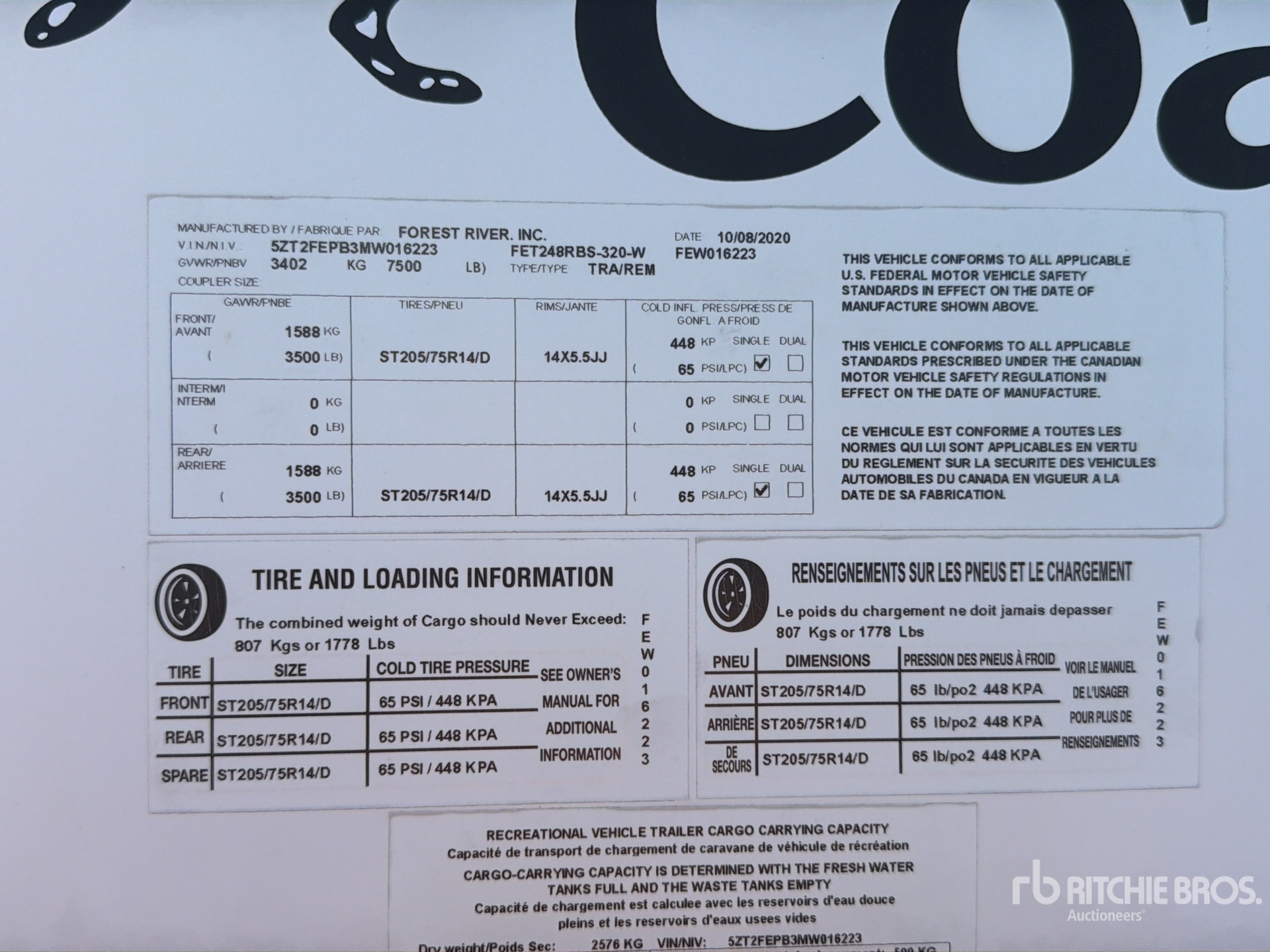 L'équipement n'a pas été testé avec charge ou utilisé dans toutes les situations applicables. Nous ne garantissons en aucun cas le bon fonctionnement de l'équipement conformément aux spécifications du fabricant. Aucune inspection n'a été effectuée pour vérifier tout aspect fonctionnel, sauf indication expresse dans le présent document. Seule une sélection de photos des composants individuels du train roulant sont à disposition, et peut ne pas indiquer l'état de l'ensemble de celui-ci.