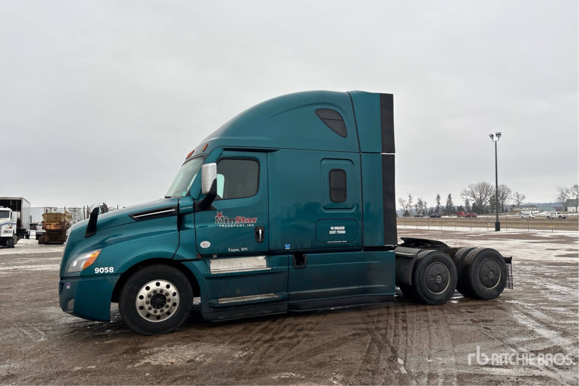 Located in Lane 26 Spot 34, Detroit DD15 505 hp Engine, 2020 US EPA Label, 17024 Engine hrs, Automated Transmission, 12500 lb Front Axle, 40000 lb Rears, 52500 lb GVWR, Engine Brake, 70 in High Rise Sleeper Cab, Bunk Beds, 228 in Wheelbase, Air Suspension, Aluminum Wheels, 275/80R22.5 Front Tires, 295/75R22.5 Rear Tires, Air Sliding 5th Wheel, Dual Fuel Tanks