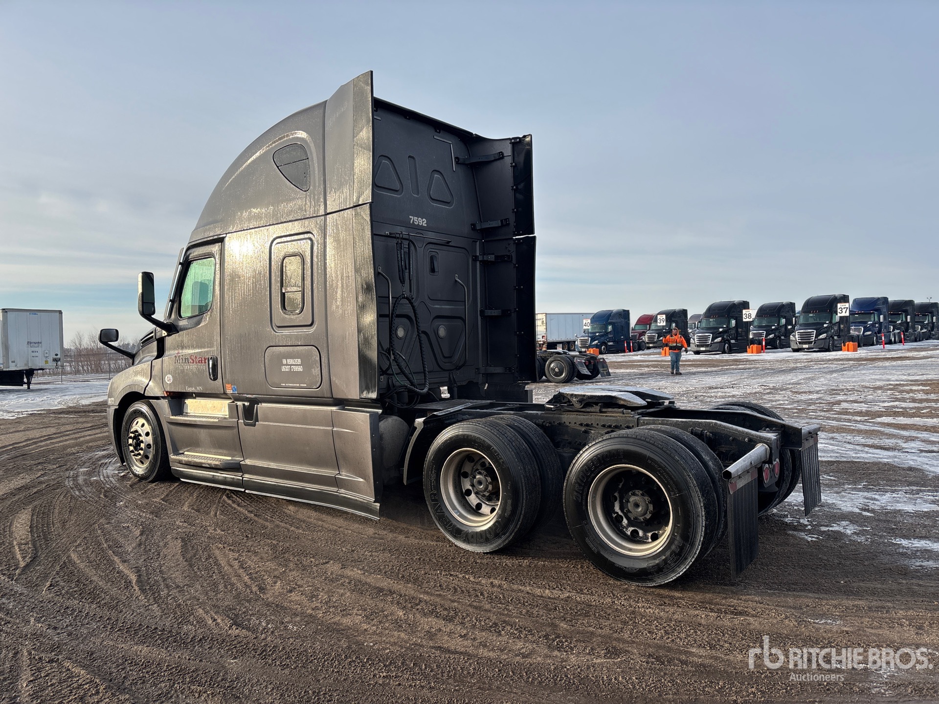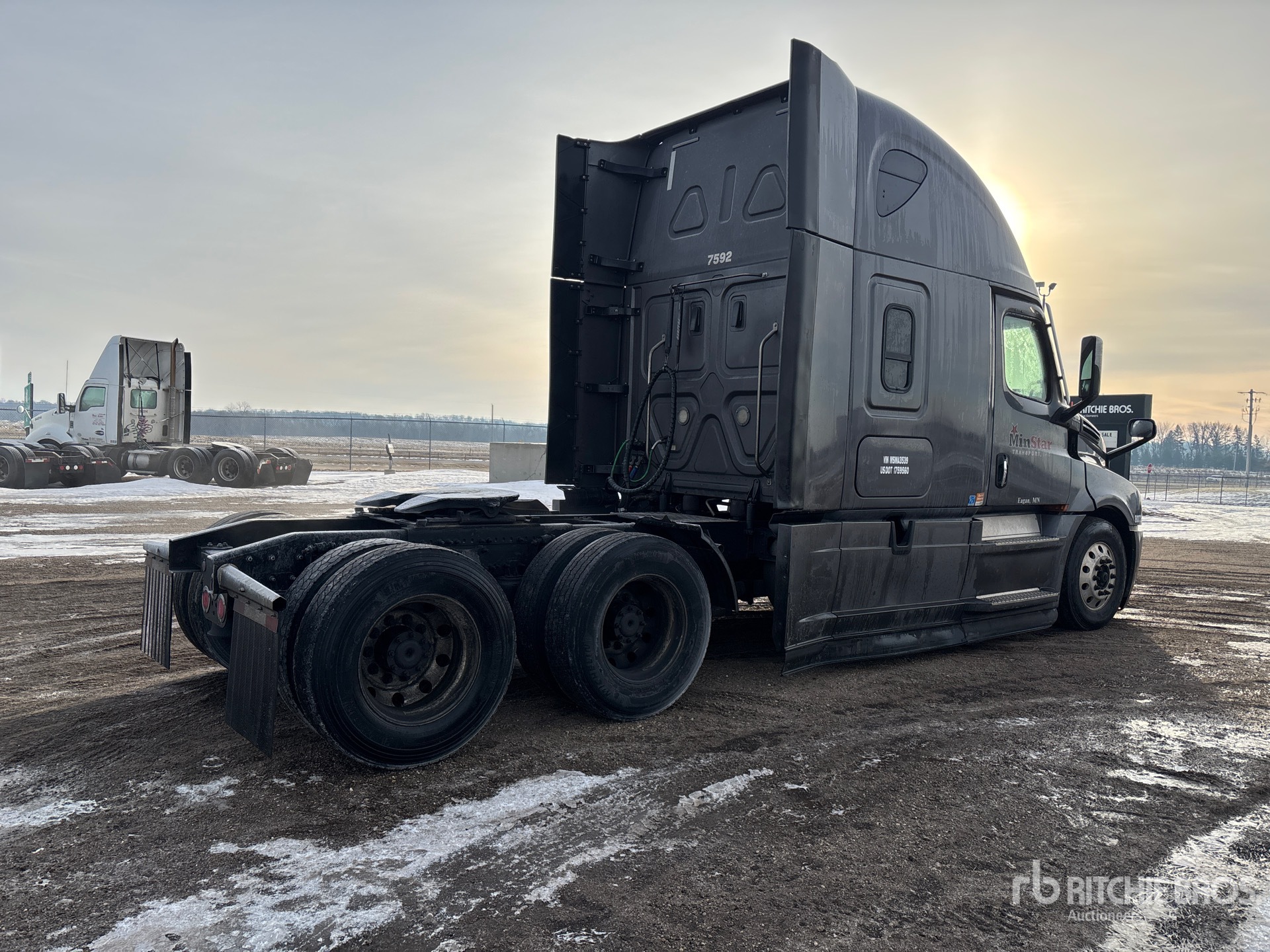 Located in Lane 26 Spot 20, Detroit DD15 475 hp Engine, 2020 US EPA Label, 27353 Engine hrs, Detroit DT12-1650-OH1 12-Speed Automated Transmission, 12500 lb Front Axle, 40000 lb Rears, 52500 lb GVWR, 70 in High Rise Sleeper Cab, 223 in Wheelbase, Air Suspension, Aluminum Wheels, 295/75R22.5 Front Tires, 275/80R22.5 Rear Tires, Air Sliding 5th Wheel, Dual Fuel Tanks