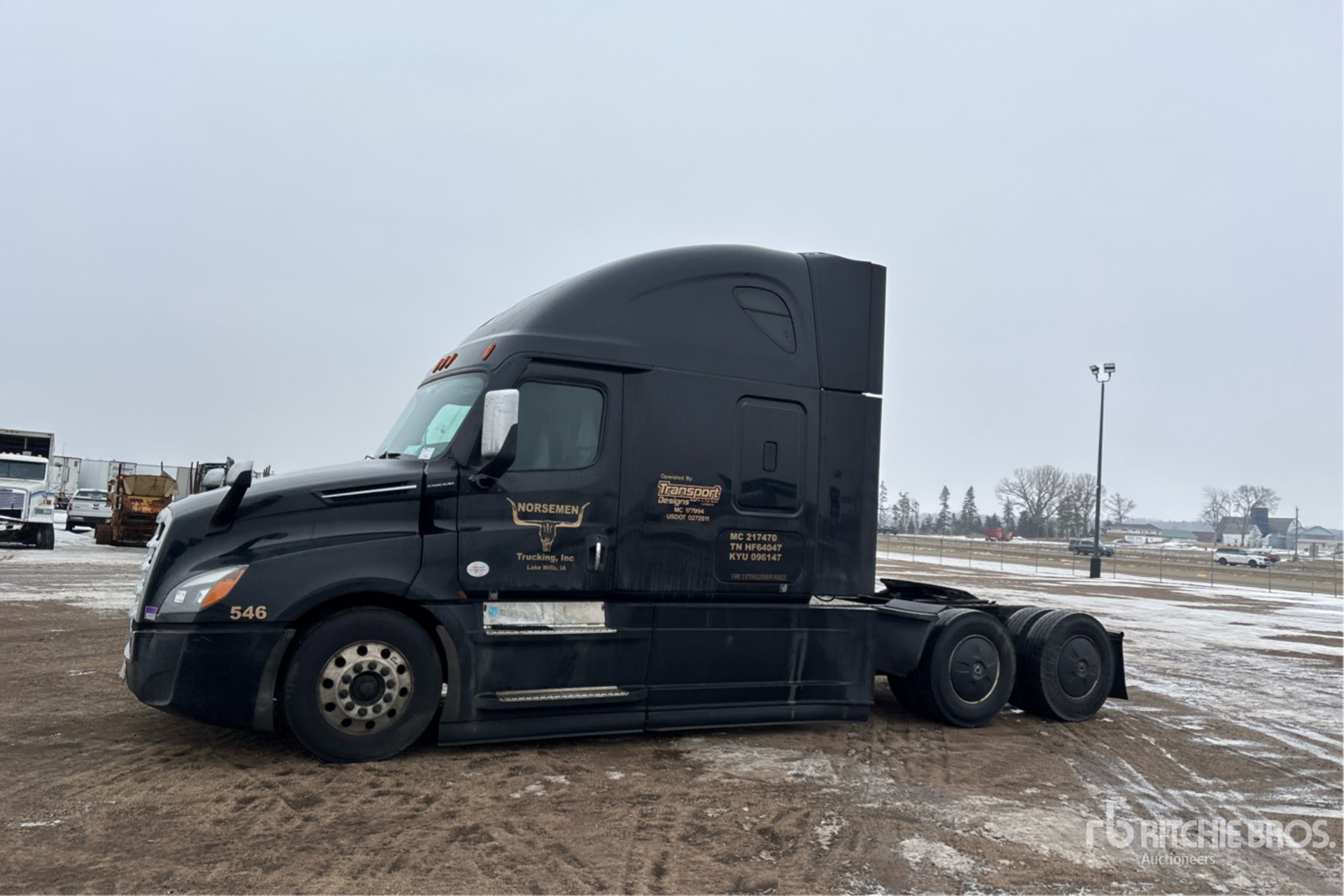 Located in Lane 26 Spot 43, Detroit DD15 455 hp Engine, 19140 Engine hrs, Detroit Dt12-1750-ohe 12-Speed Automated Transmission, 13300 lb Front Axle, 40000 lb Rears, 53300 lb GVWR, Engine Brake, 70 in High Rise Sleeper Cab, 227 in Wheelbase, Air Suspension, Aluminum Wheels, 275/80R22.5, Air Sliding 5th Wheel, Dual Fuel Tanks