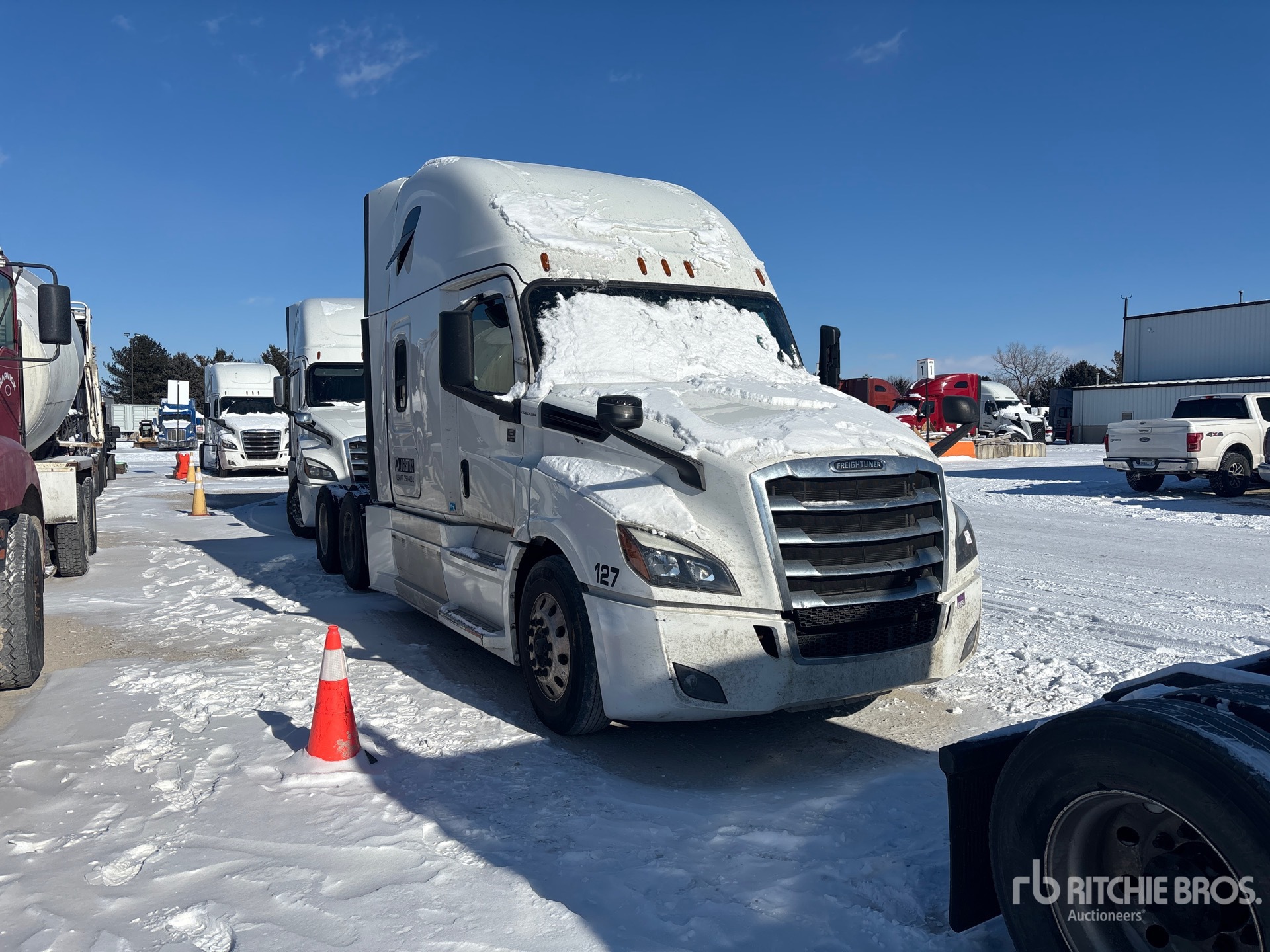 Detroit DD15 505 hp Engine, 2020 US EPA Label, Detroit DT12-1750-OHE 12-Speed Automated Transmission, 13300 lb Front Axle, 40000 lb Rears, 53300 lb GVWR, Engine Brake, 70 in High Rise Sleeper Cab, Bunk Beds, 229 in Wheelbase, Air Suspension, Aluminum Wheels, 295/75R22.5, Air Sliding 5th Wheel, Dual Fuel Tanks