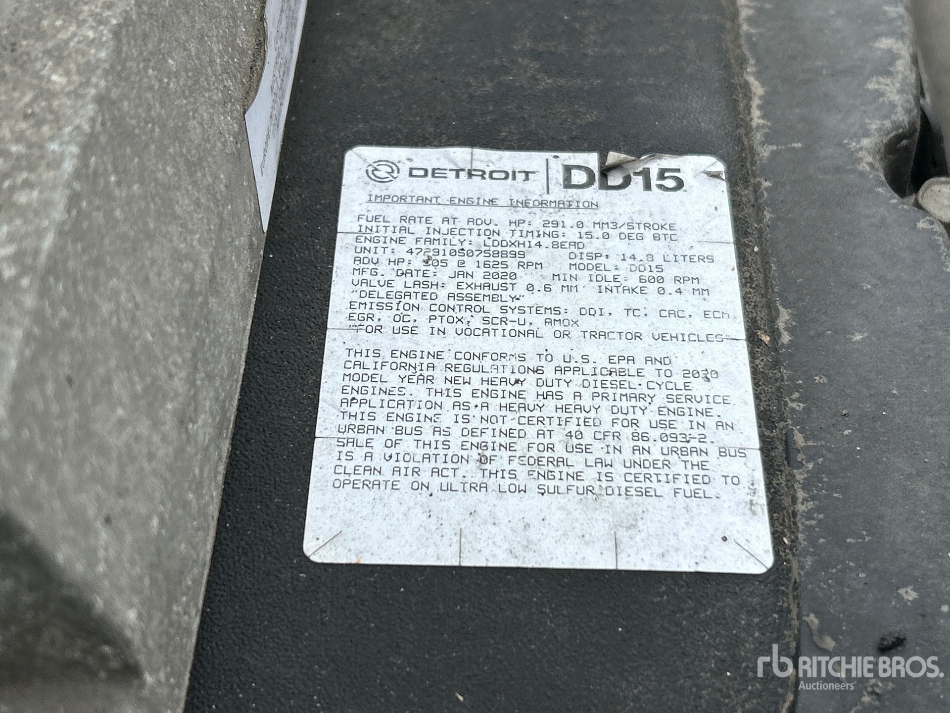 Les informations détaillées de l'équipement ont une portée limitée. Ritchie Bros. Auctioneers n'a inspecté aucun aspect ou composant de l'équipement autre que ceux expressément énoncés dans le présent document. Sauf indication expresse, nous ne faisons aucune déclaration ou garantie, expresse ou implicite, concernant l'équipement et/ou ses composants, y compris, sans s'y limiter, toute déclaration ou garantie concernant le fonctionnement, la conformité à toute norme ou exigence de sécurité de toute autorité ou tout organisme de réglementation applicable, l'adéquation à un usage particulier ou la qualité marchande. Nous vous conseillons fortement d'effectuer vous-même une inspection détaillée de l'équipement avant d'enchérir.
