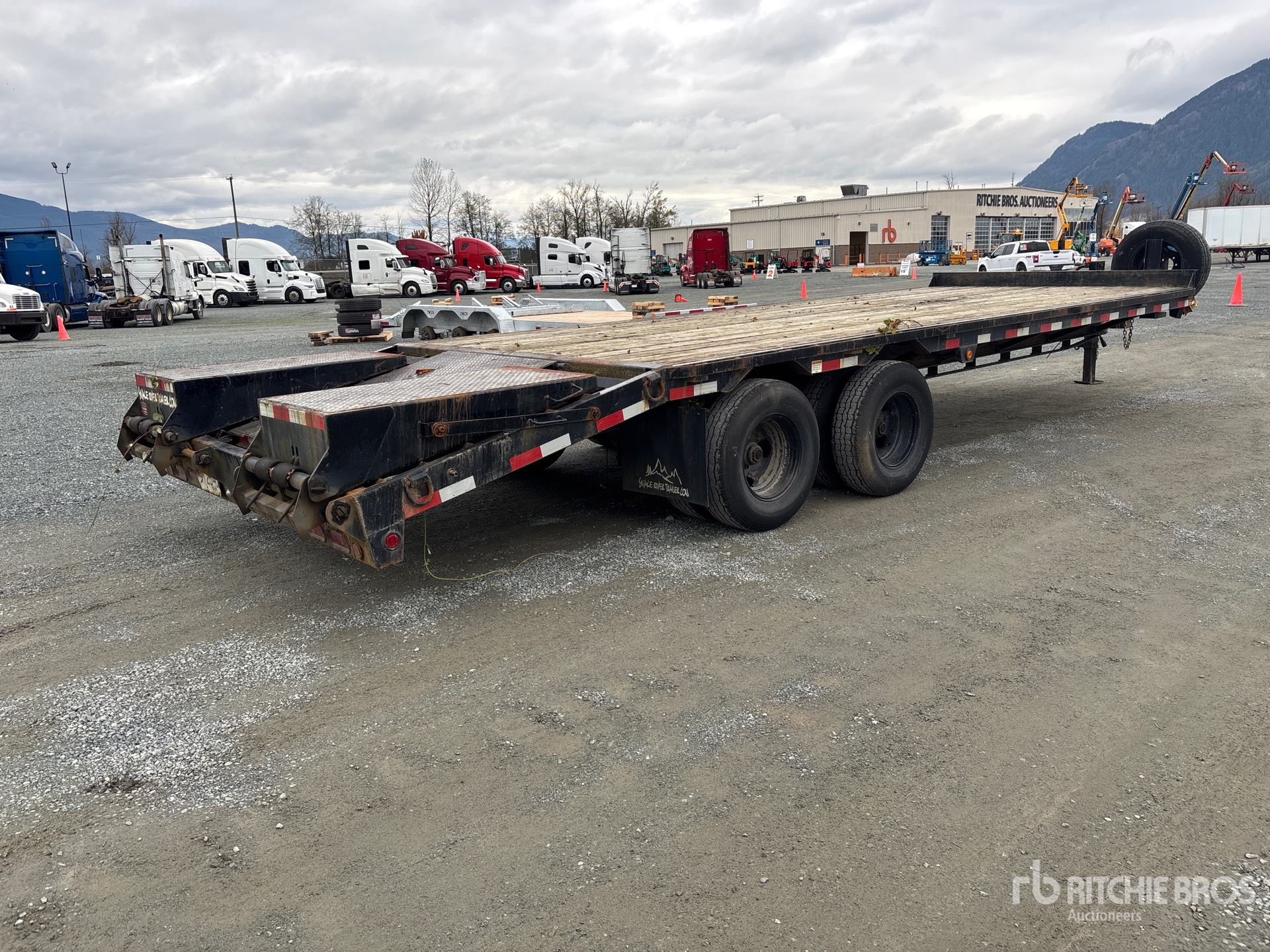 Lunette Ring Hitch, Spring Suspension, Fixed Dovetail, 97 in Usable Deck Width, 102 in Overall Deck Width, Deck Over Tires, Spring Assisted Ramps, Wood Flooring, 235/80R16 Tires, 24000 lb GVWR