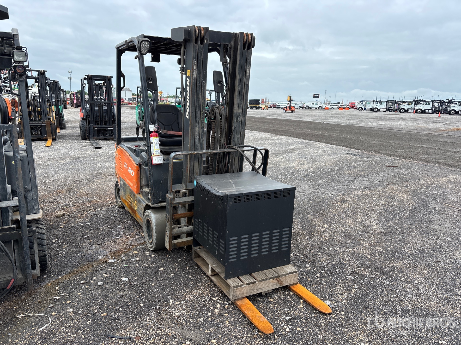 3 Stage Mast, Full Free Lift, 187 in Max Lift Height, 82 in Lowered Mast Height, 46 in Forks, Fork Positioner, 48 V, Battery Charger