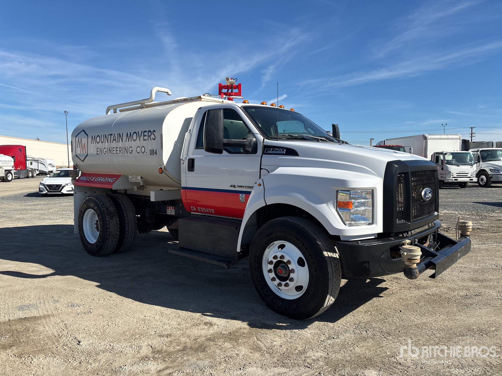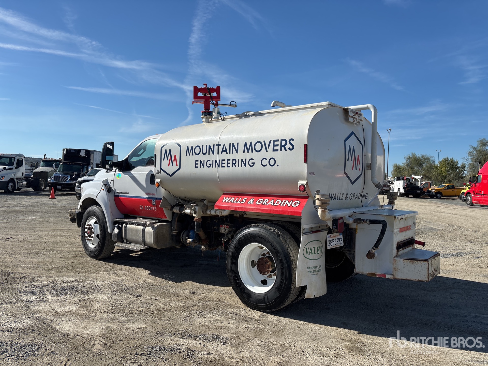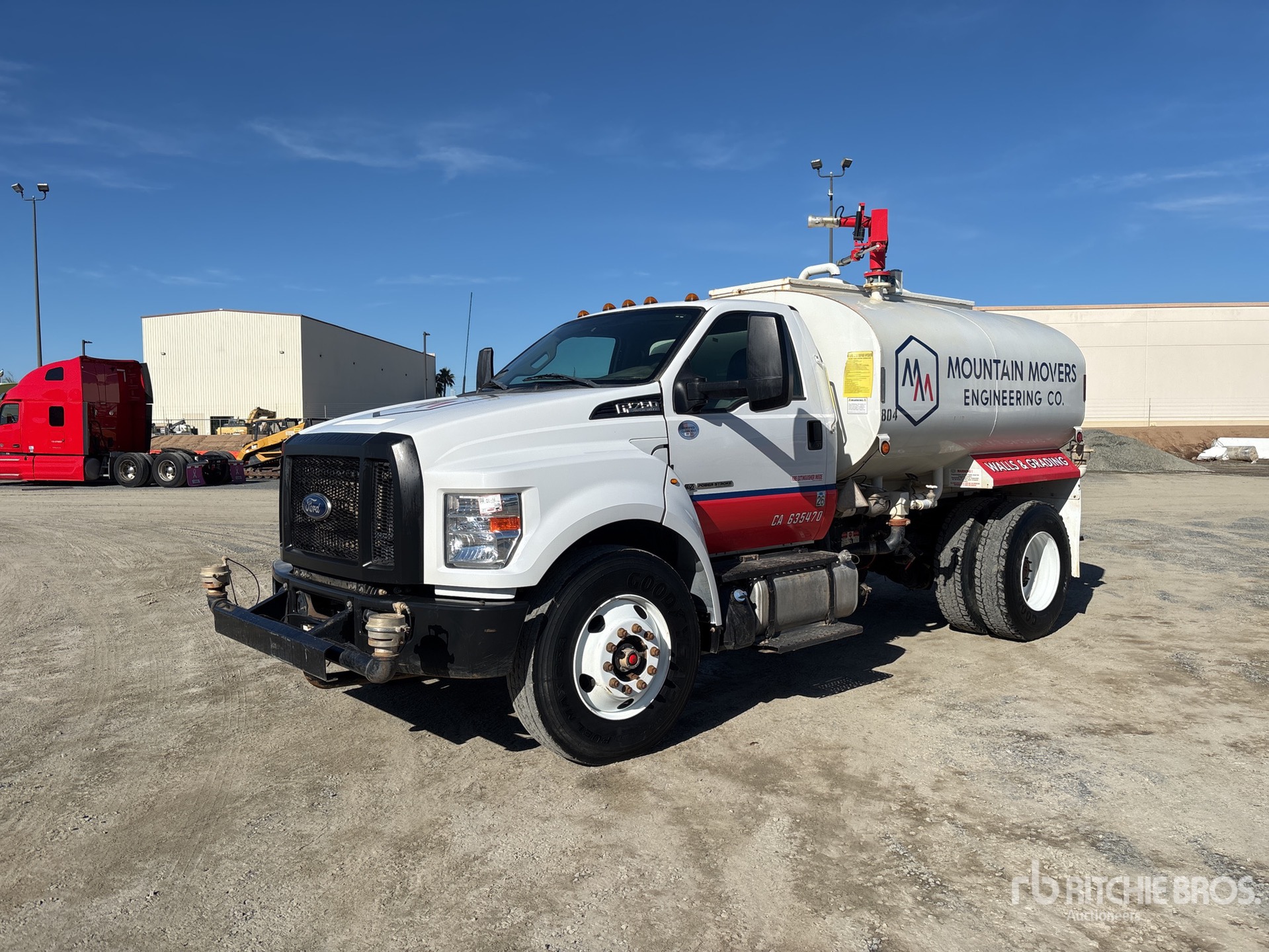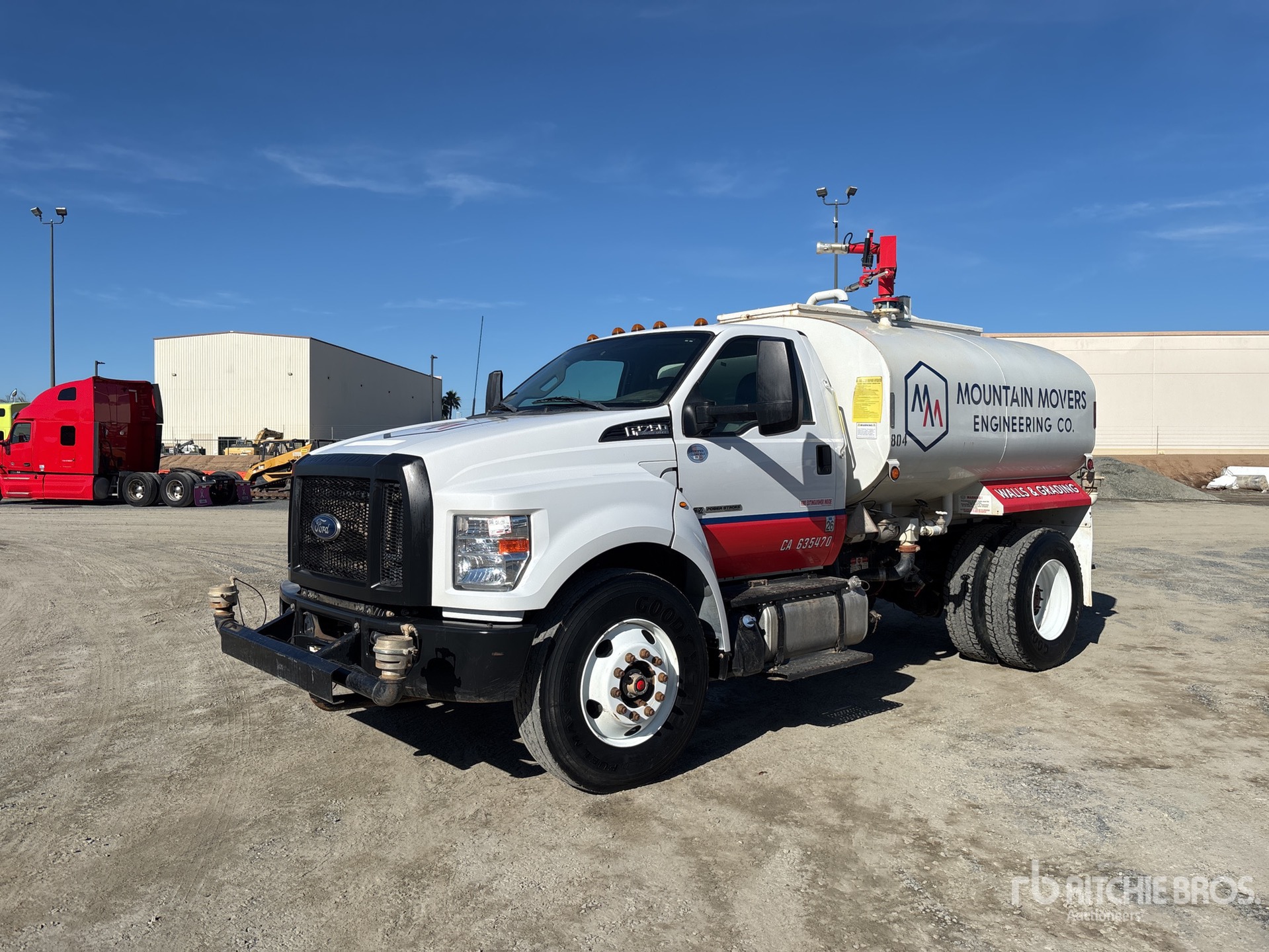 Located in Lane 9 Spot 40, Ford V8 6.7 L Diesel Engine, 2021 US EPA Label, Requires Diesel Exhaust Fluid, Automatic Transmission, 12000 lb Front Axle, 21000 lb Rears, 11R22.5, Spring Suspension, 158 in Wheelbase, PTO, Steel Tank, Hose Reel, Water Cannon, Front Spray, Rear Spray, Side Spray, Equipment-from-Tonka-Tractor-Rentals