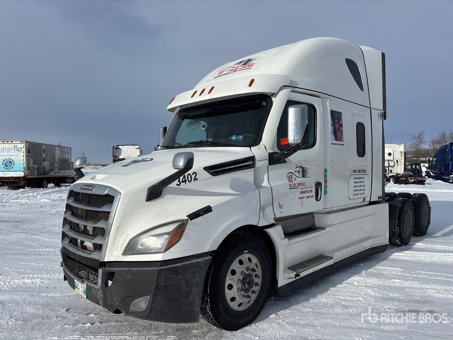 Detroit DD15 505 hp Engine, 12836 Engine hrs, Detroit 12-Speed Automated Transmission, 13220 lb Front Axle, 40000 lb Rears, 53220 lb GVWR, Engine Brake, Double Differential Locks, 60 in High Rise Sleeper Cab, Bunk Beds, 233 in Wheelbase, Air Suspension, Aluminum Wheels, 11R22.5, Air Sliding 5th Wheel, Dual Fuel Tanks