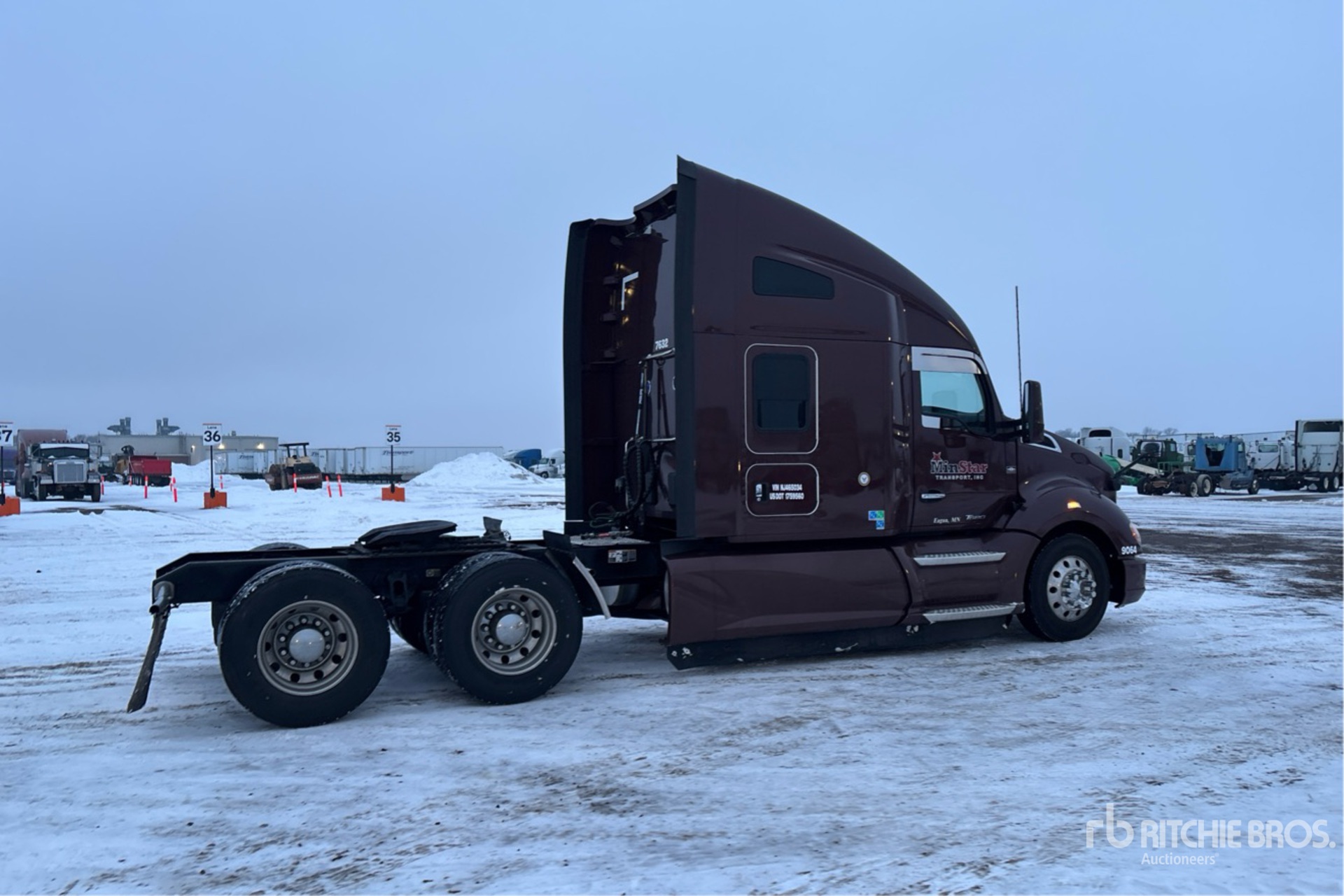 Located in Lane 26 Spot 124, Paccar MX-13 455 hp Engine, 2021 US EPA Label, 15015 Engine hrs, Eaton Fuller 10-Speed Manual Transmission, 12350 lb Front Axle, 40000 lb Rears, 52350 lb GVWR, Engine Brake, 62 in High Rise Sleeper Cab, Bunk Beds, 226 in Wheelbase, Air Suspension, Aluminum Outer Wheels, 295/75R22.5, Air Sliding 5th Wheel, Dual Fuel Tanks