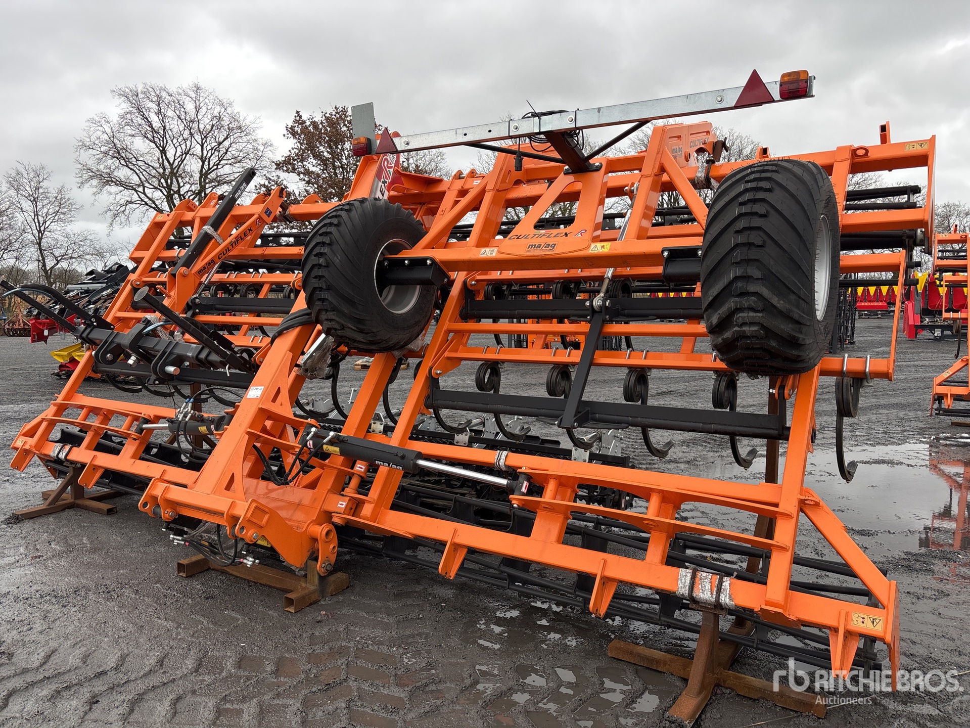 L'équipement n'a pas été testé avec charge ou utilisé dans toutes les situations applicables. Nous ne garantissons en aucun cas le bon fonctionnement de l'équipement conformément aux spécifications du fabricant. Aucune inspection n'a été effectuée pour vérifier tout aspect fonctionnel, sauf indication expresse dans le présent document. Seule une sélection de photos des composants individuels du train roulant sont à disposition, et peut ne pas indiquer l'état de l'ensemble de celui-ci.