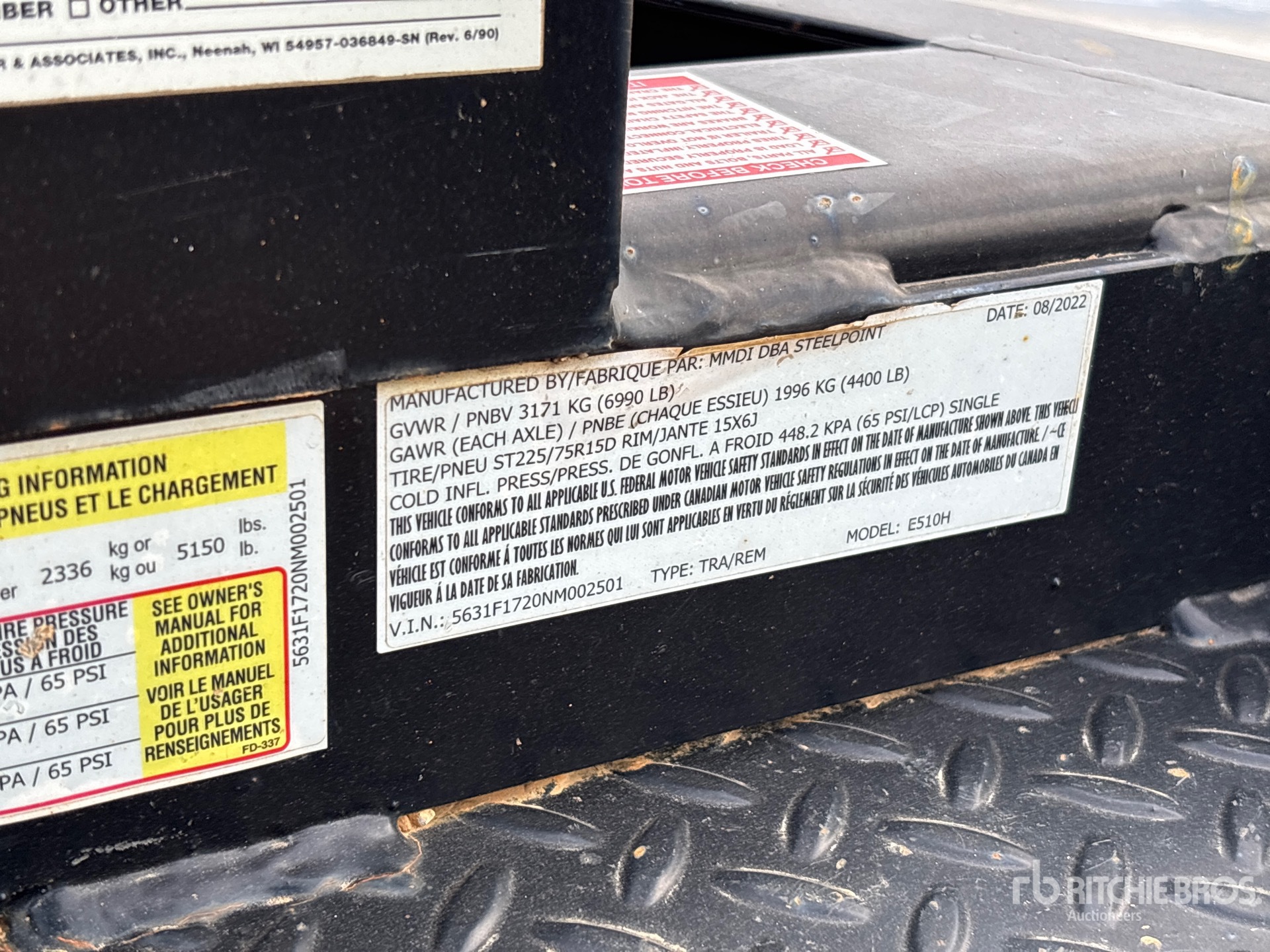 Located in Lane 18 Spot 25, Ball Hitch, Torsion Axle, 60 in Deck Width, Steel Decking, 225/75R15 Tires, 6990 lb GVWR
