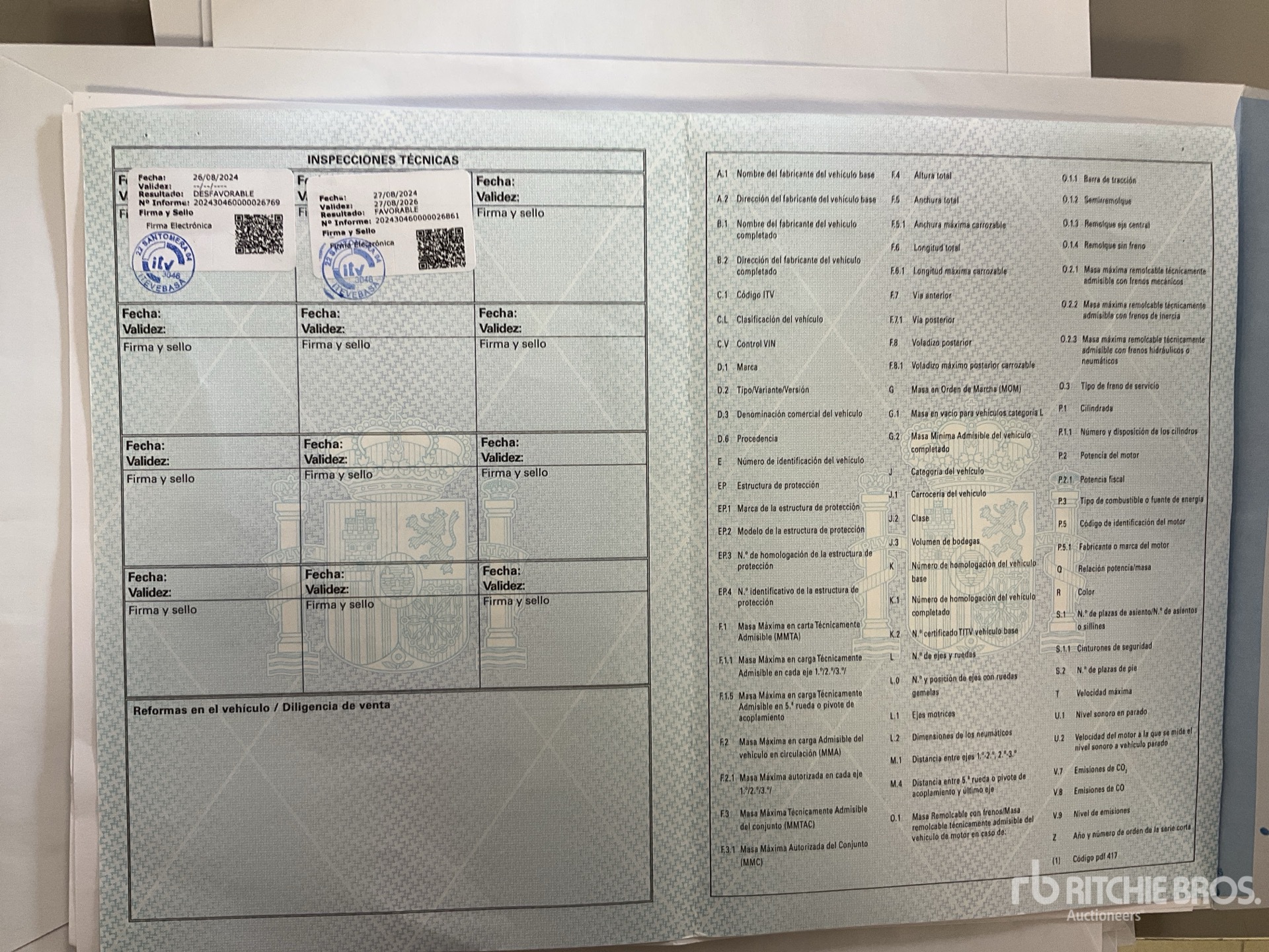 L'équipement n'a pas été testé avec charge ou utilisé dans toutes les situations applicables. Nous ne garantissons en aucun cas le bon fonctionnement de l'équipement conformément aux spécifications du fabricant. Aucune inspection n'a été effectuée pour vérifier tout aspect fonctionnel, sauf indication expresse dans le présent document. Seule une sélection de photos des composants individuels du train roulant sont à disposition, et peut ne pas indiquer l'état de l'ensemble de celui-ci.