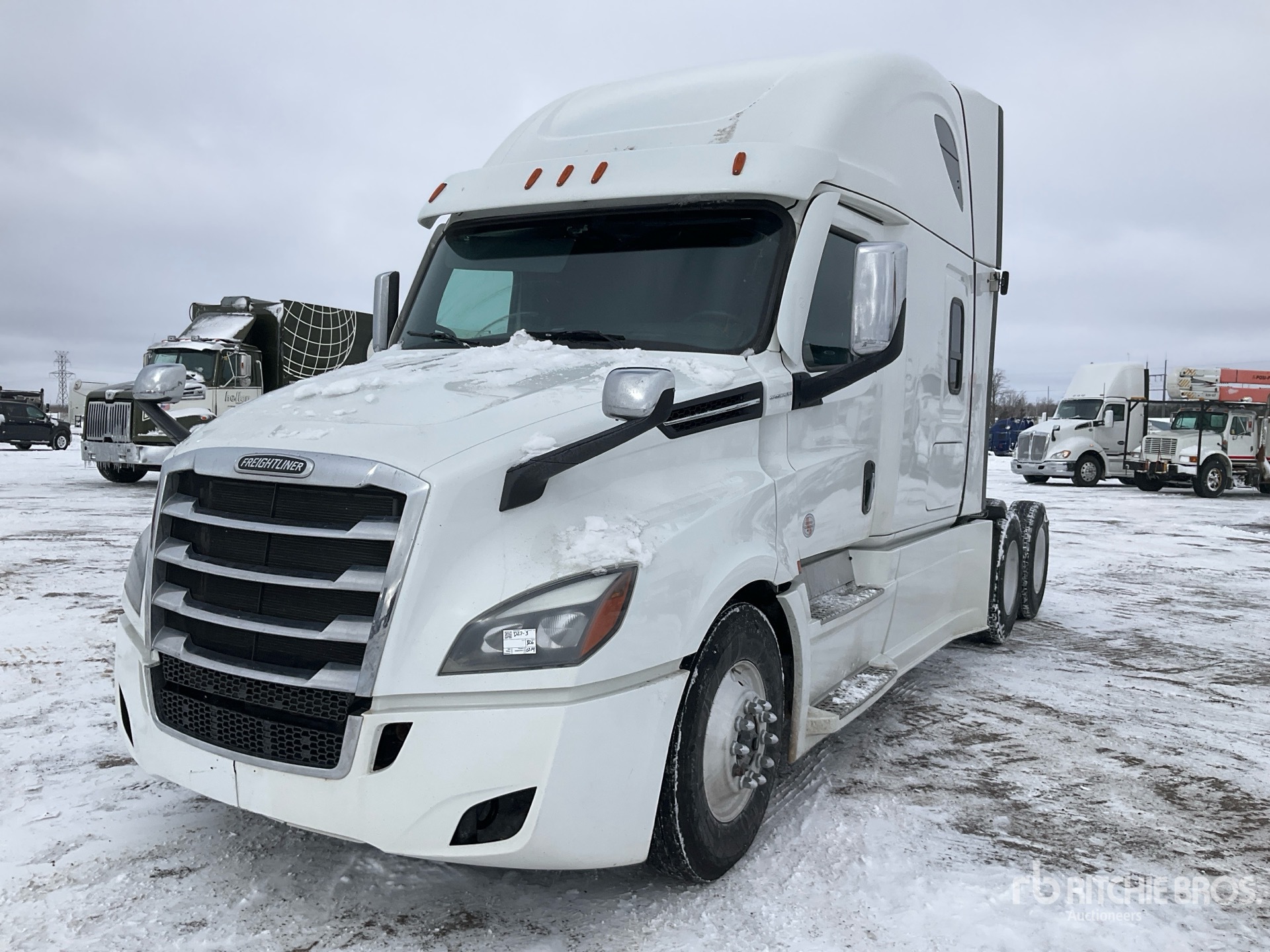 Located in Lane 7 Spot 23, Detroit DD15 505 hp Engine, 2022 US EPA Label, Detroit DT12-1750-OH 12-Speed Automated Transmission, 12350 lb Front Axle, 40000 lb Rears, 52350 lb GVWR, Engine Brake, Differential Lock, 72 in High Rise Sleeper Cab, Bunk Beds, 225 in Wheelbase, Air Suspension, Aluminum Wheels, 11R22.5, Air Sliding 5th Wheel, Dual Fuel Tanks, NOTICE-TO-US-BIDDERS: this asset is likely exempt from US import tariffs as it was manufactured in the US. Bidders are responsible for confirming with their customs broker