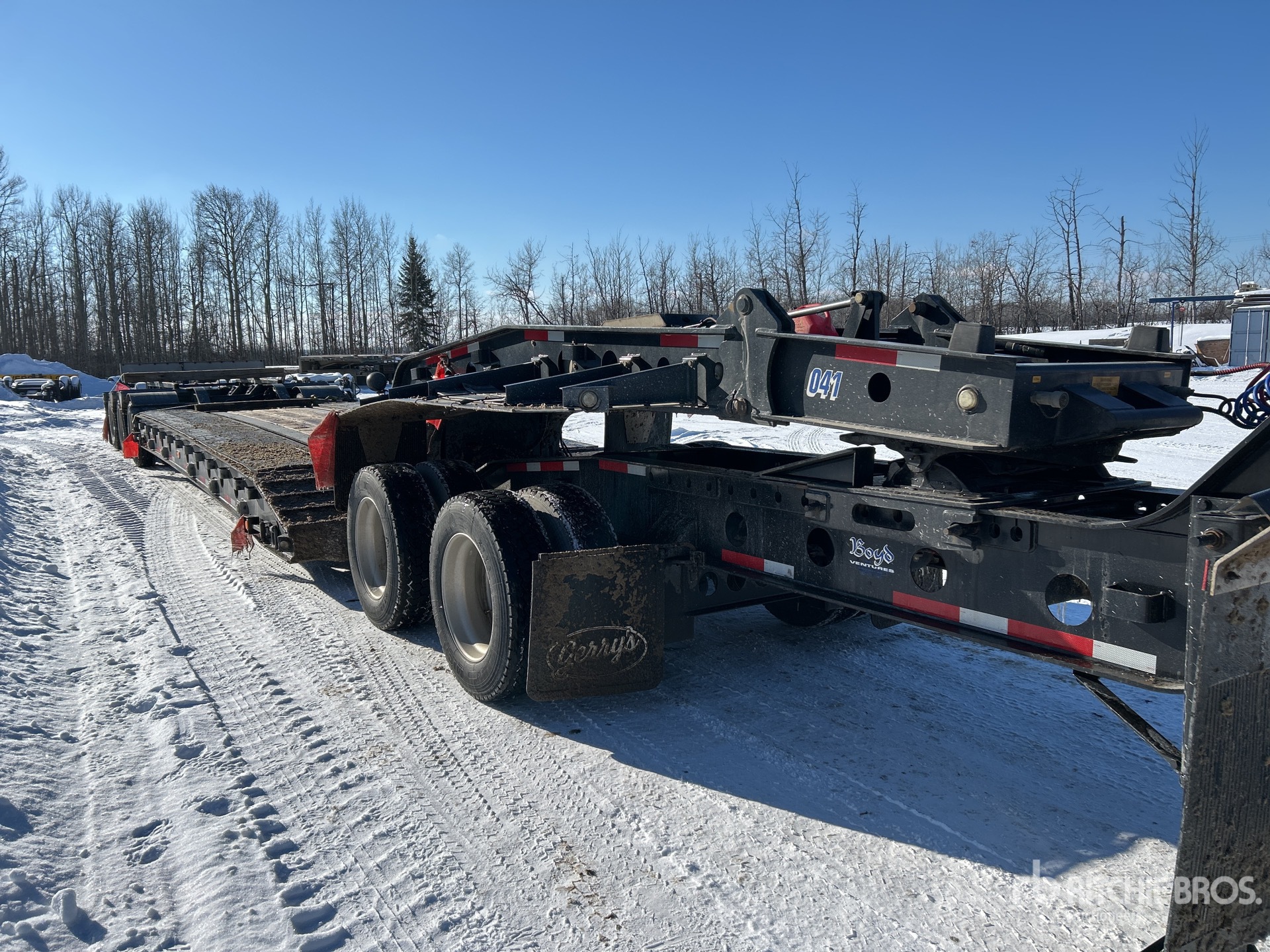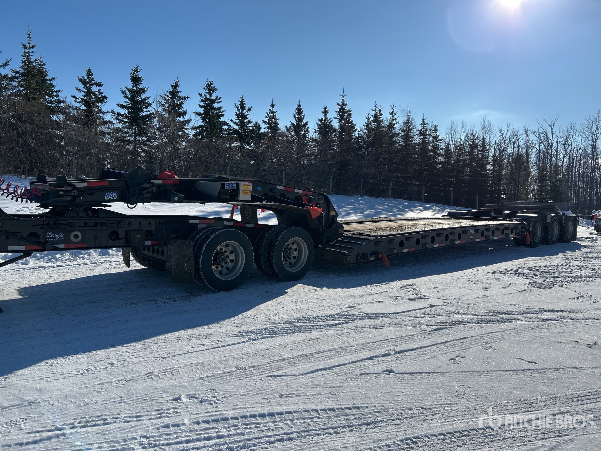 Hydraulic Removable Gooseneck, Neck Extension, 27 ft x 120 in Main Deck, Air Ride Suspension, Plumbed for Booster Axle, Gasoline Driven Self Contained Hydraulic System, Aluminum Wheels