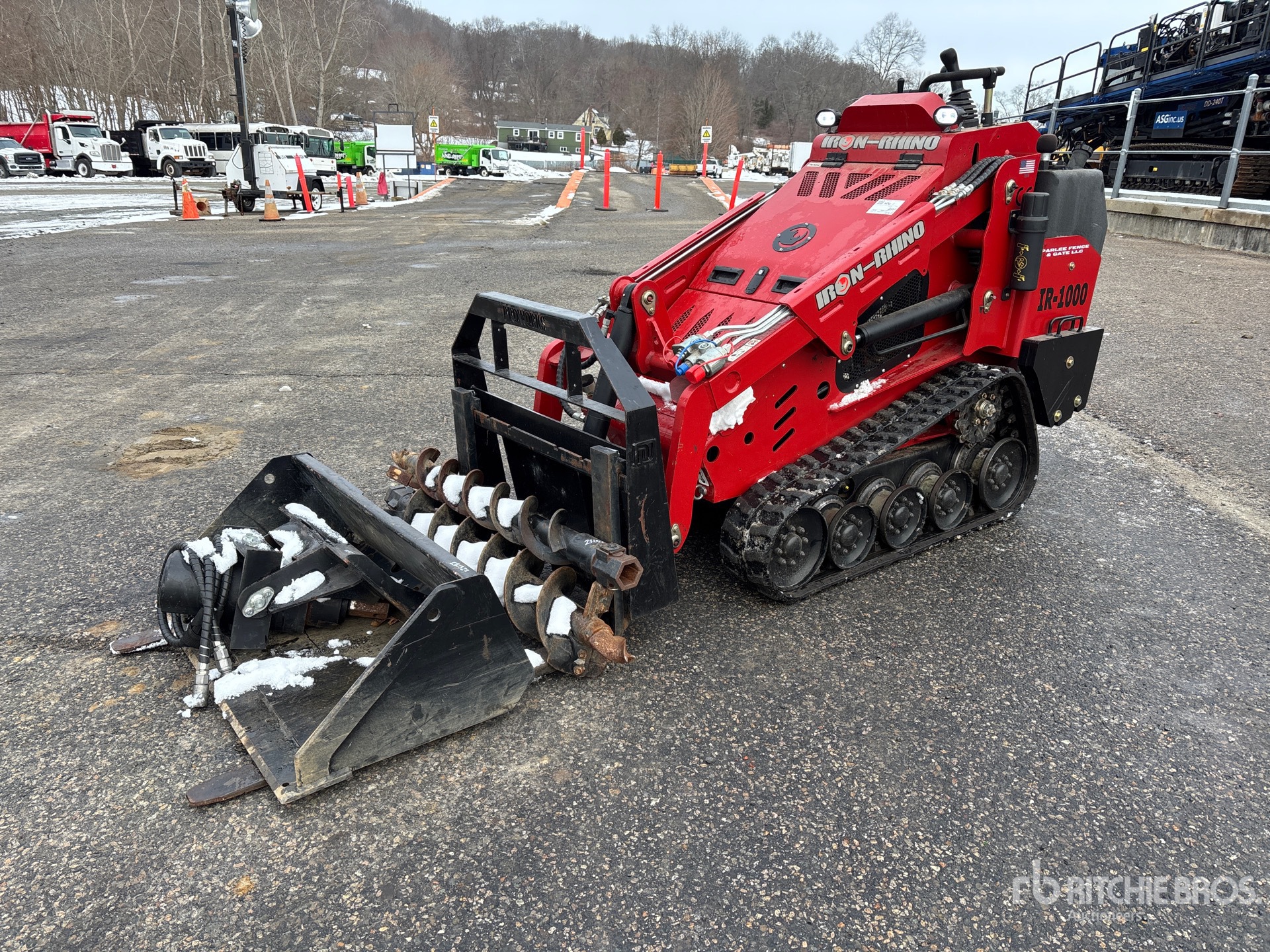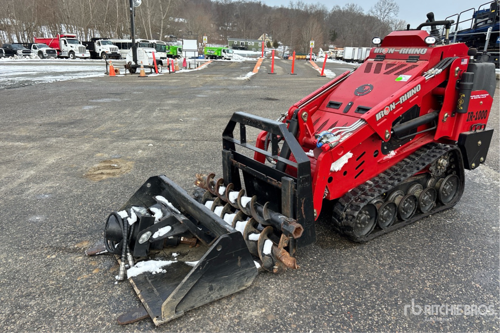 Open Operator Station, Joystick Steering, 8 in Track Belts, Manual Coupler, 45 in Bucket, Forks, Auger w/ (2) Bits, Counterweight Kit