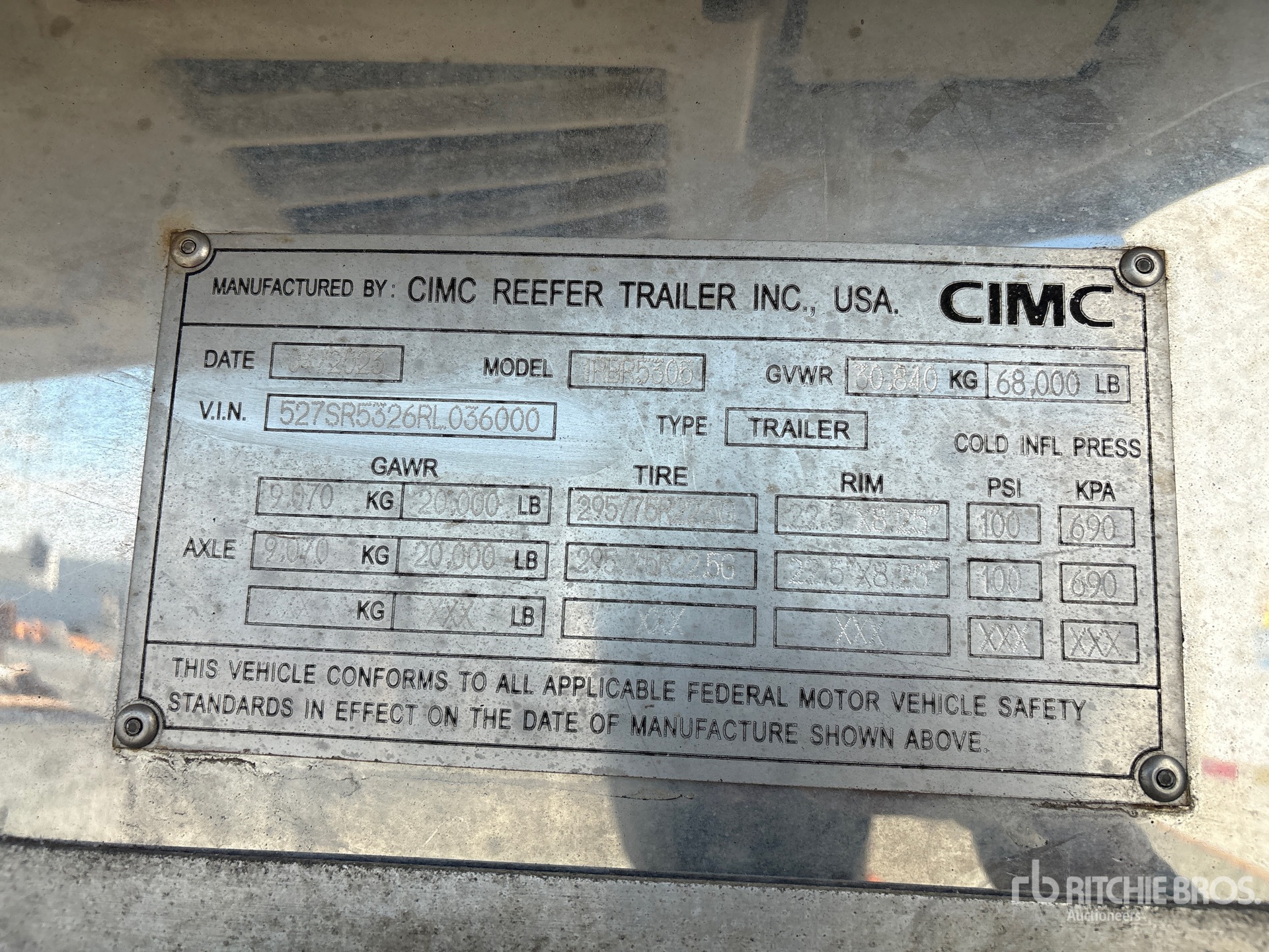 2024 Thermo King 4NNYEC0C Refrigeration Unit, Aluminum/Steel Combination Frame, Air Ride Sliding Suspension, Side Skirts, Ducted Floor, Swing Door, 295/75R22.5 Tires 68000 lb GVWR