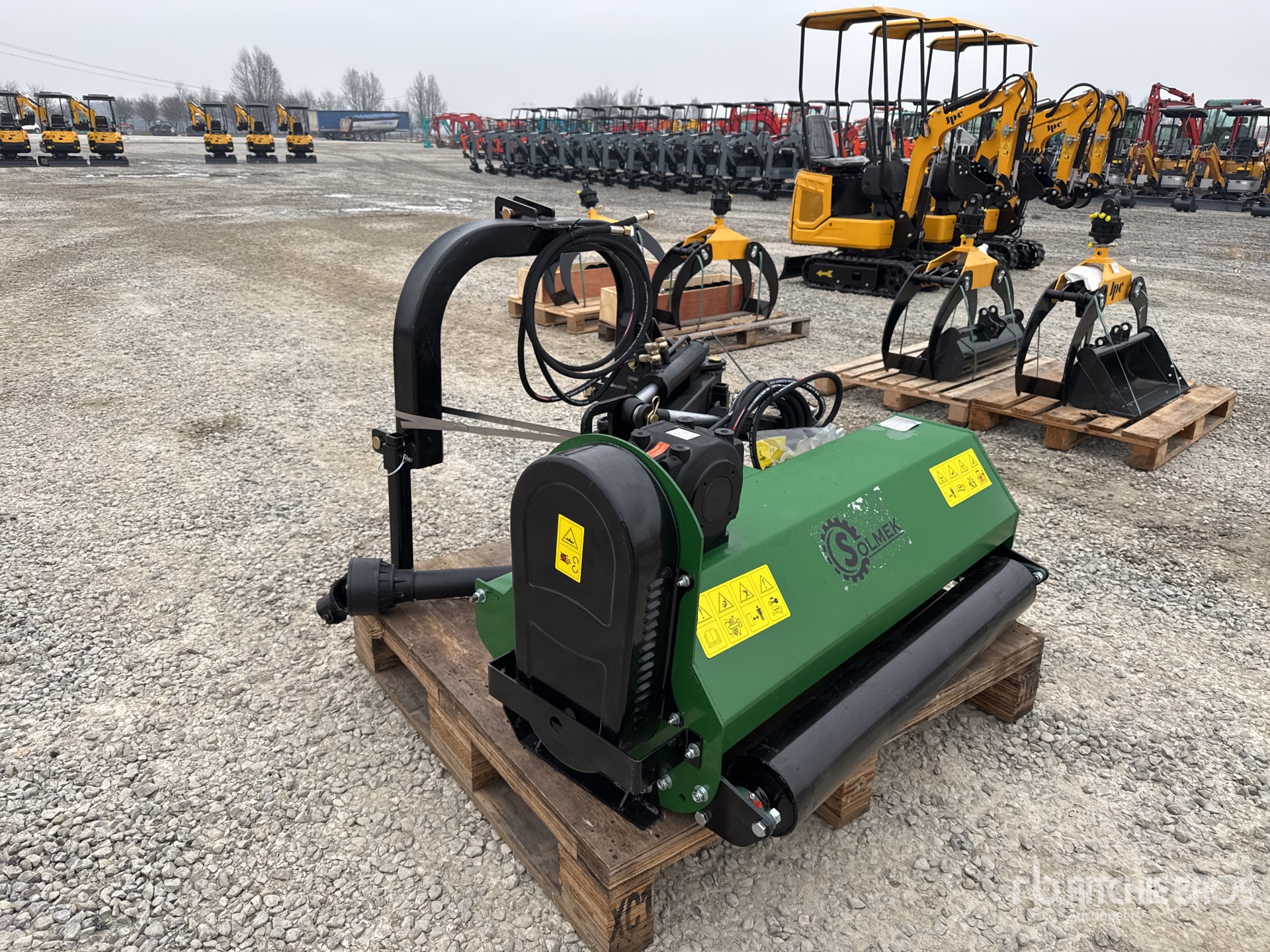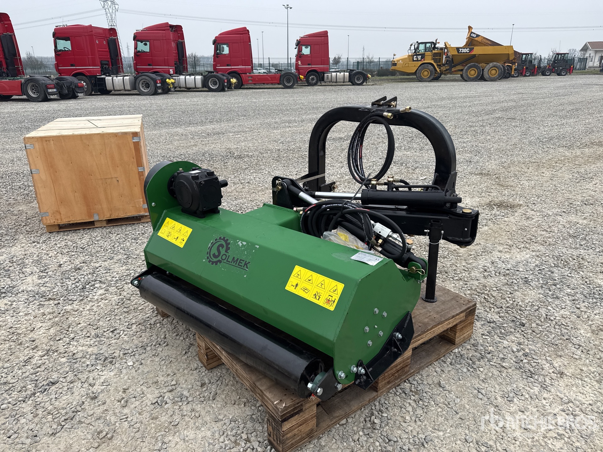 L'équipement n'a pas été testé avec charge ou utilisé dans toutes les situations applicables. Nous ne garantissons en aucun cas le bon fonctionnement de l'équipement conformément aux spécifications du fabricant. Aucune inspection n'a été effectuée pour vérifier tout aspect fonctionnel, sauf indication expresse dans le présent document. Seule une sélection de photos des composants individuels du train roulant sont à disposition, et peut ne pas indiquer l'état de l'ensemble de celui-ci.