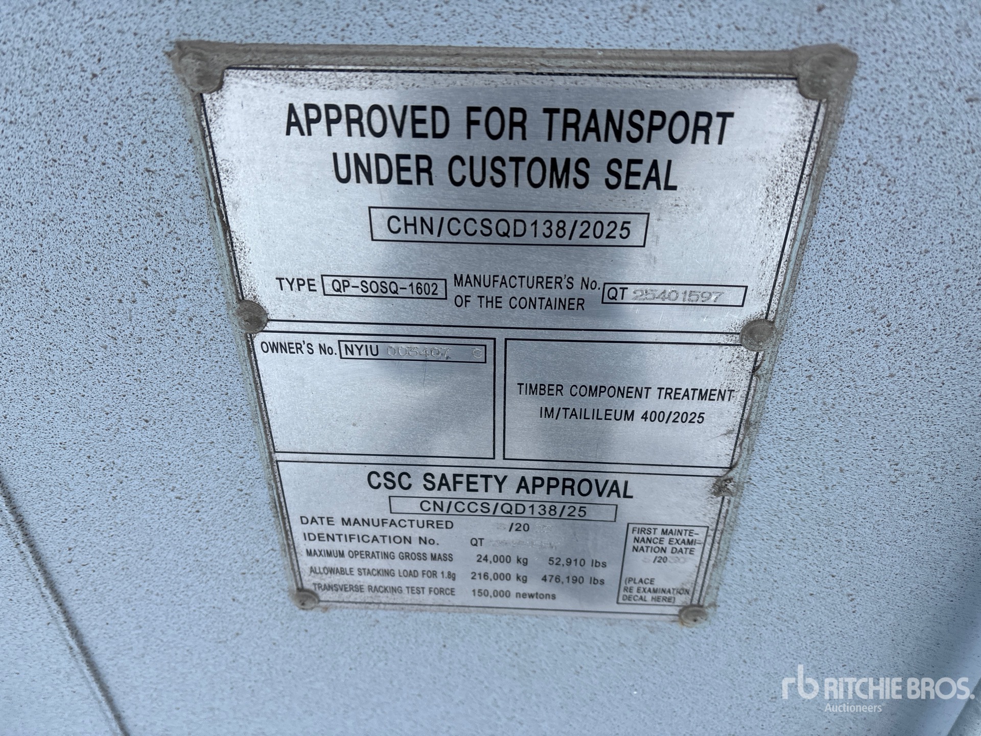 Les informations détaillées de l'équipement ont une portée limitée. Ritchie Bros. Auctioneers n'a inspecté aucun aspect ou composant de l'équipement autre que ceux expressément énoncés dans le présent document. Sauf indication expresse, nous ne faisons aucune déclaration ou garantie, expresse ou implicite, concernant l'équipement et/ou ses composants, y compris, sans s'y limiter, toute déclaration ou garantie concernant le fonctionnement, la conformité à toute norme ou exigence de sécurité de toute autorité ou tout organisme de réglementation applicable, l'adéquation à un usage particulier ou la qualité marchande. Nous vous conseillons fortement d'effectuer vous-même une inspection détaillée de l'équipement avant d'enchérir.