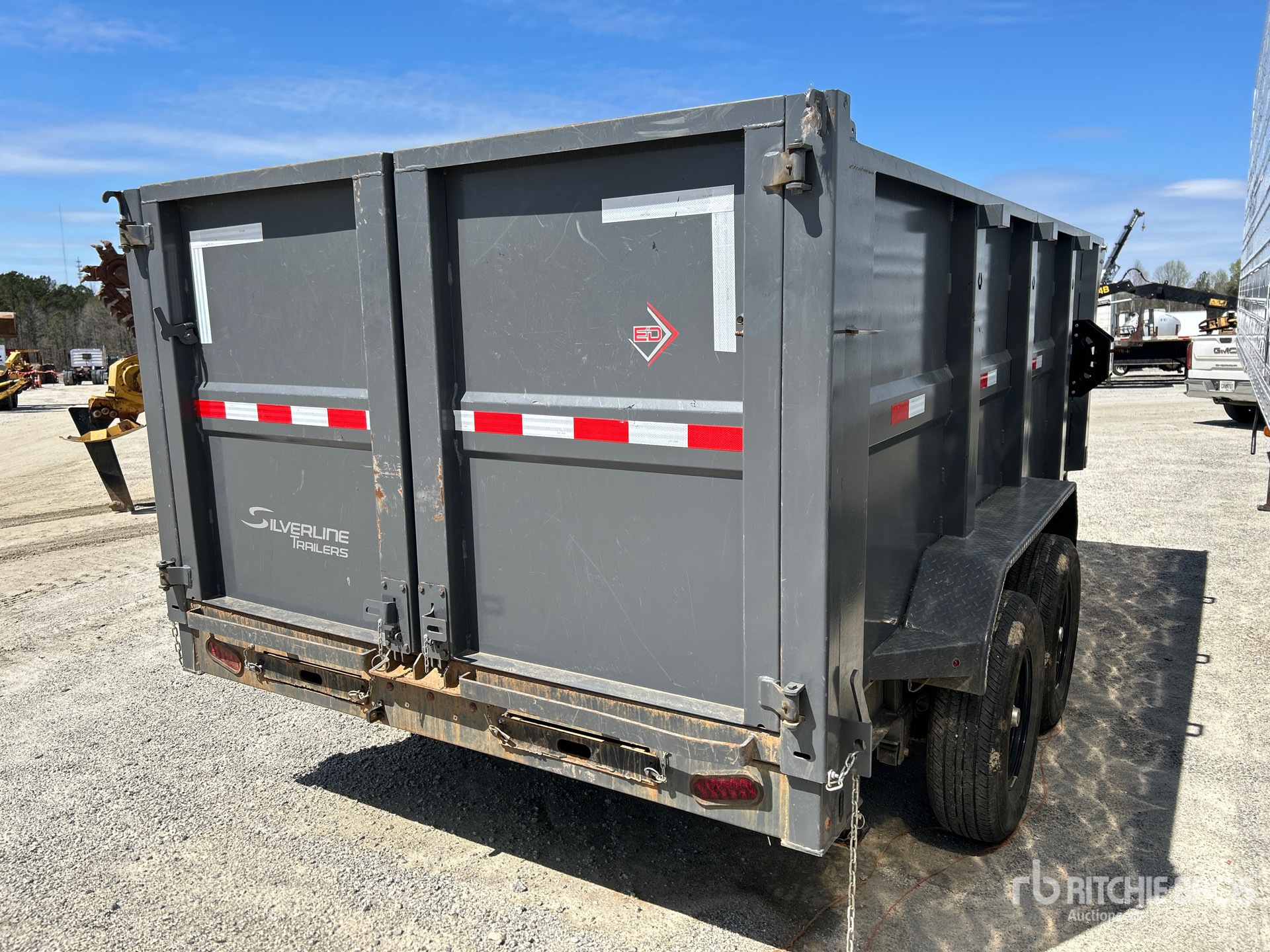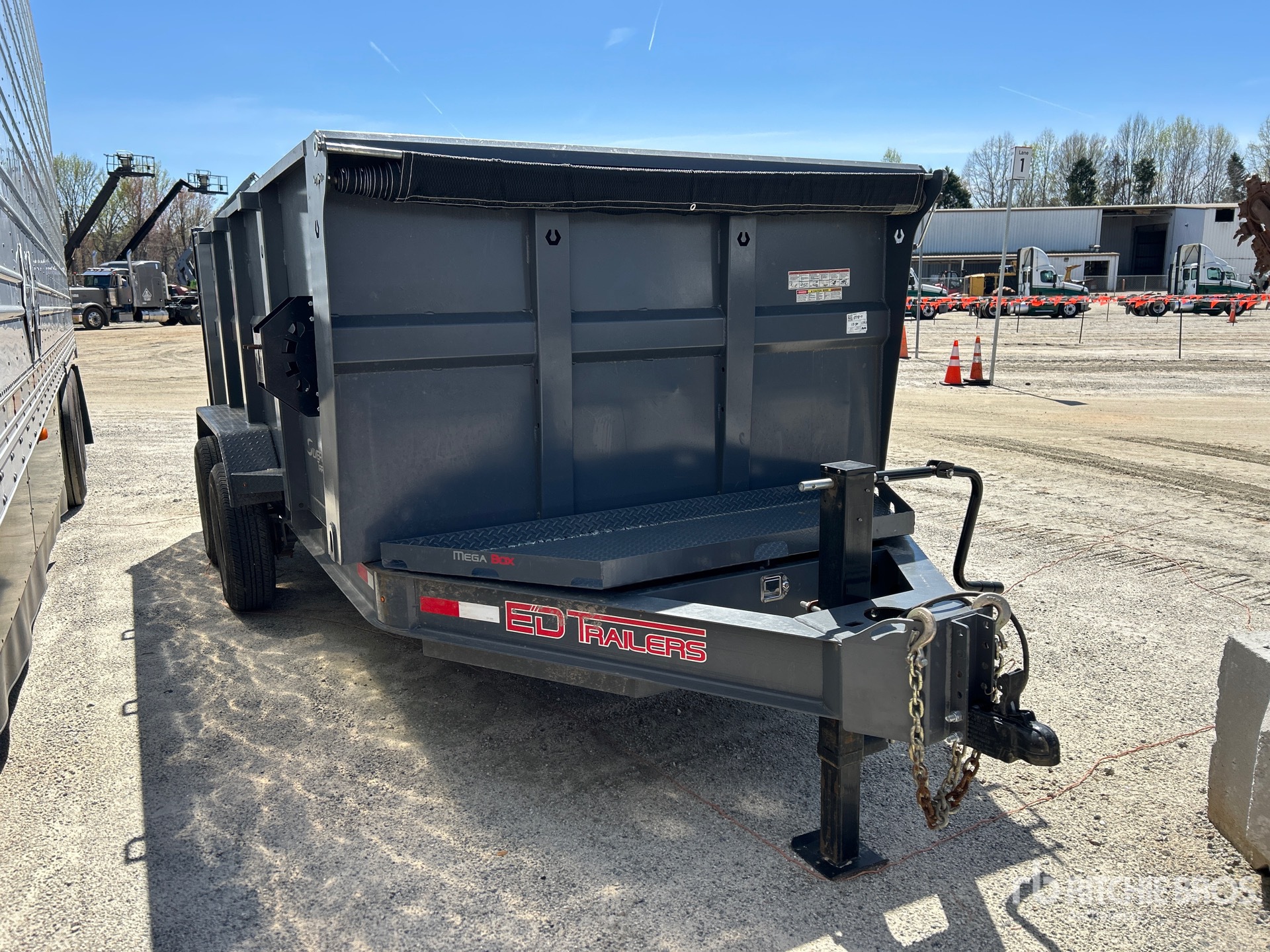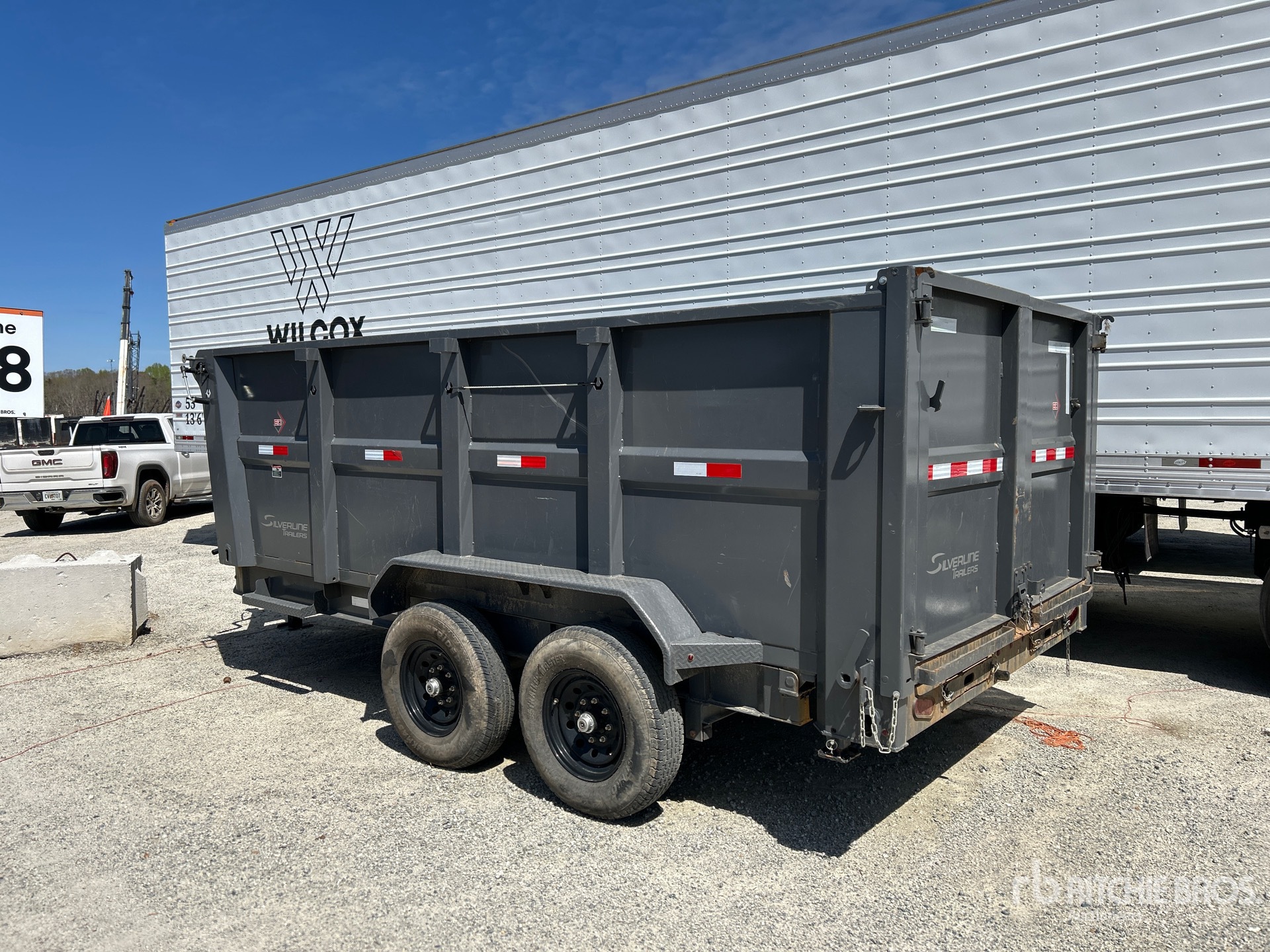 Located in Lane 28 Spot 24, Ball Hitch, Spring Suspension, Electric Brakes, 14 ft 6 in Body, 48 in Side Walls, Steel Body, Manual Roll Tarp, Swing Tailgate, 14000 lb GVWR