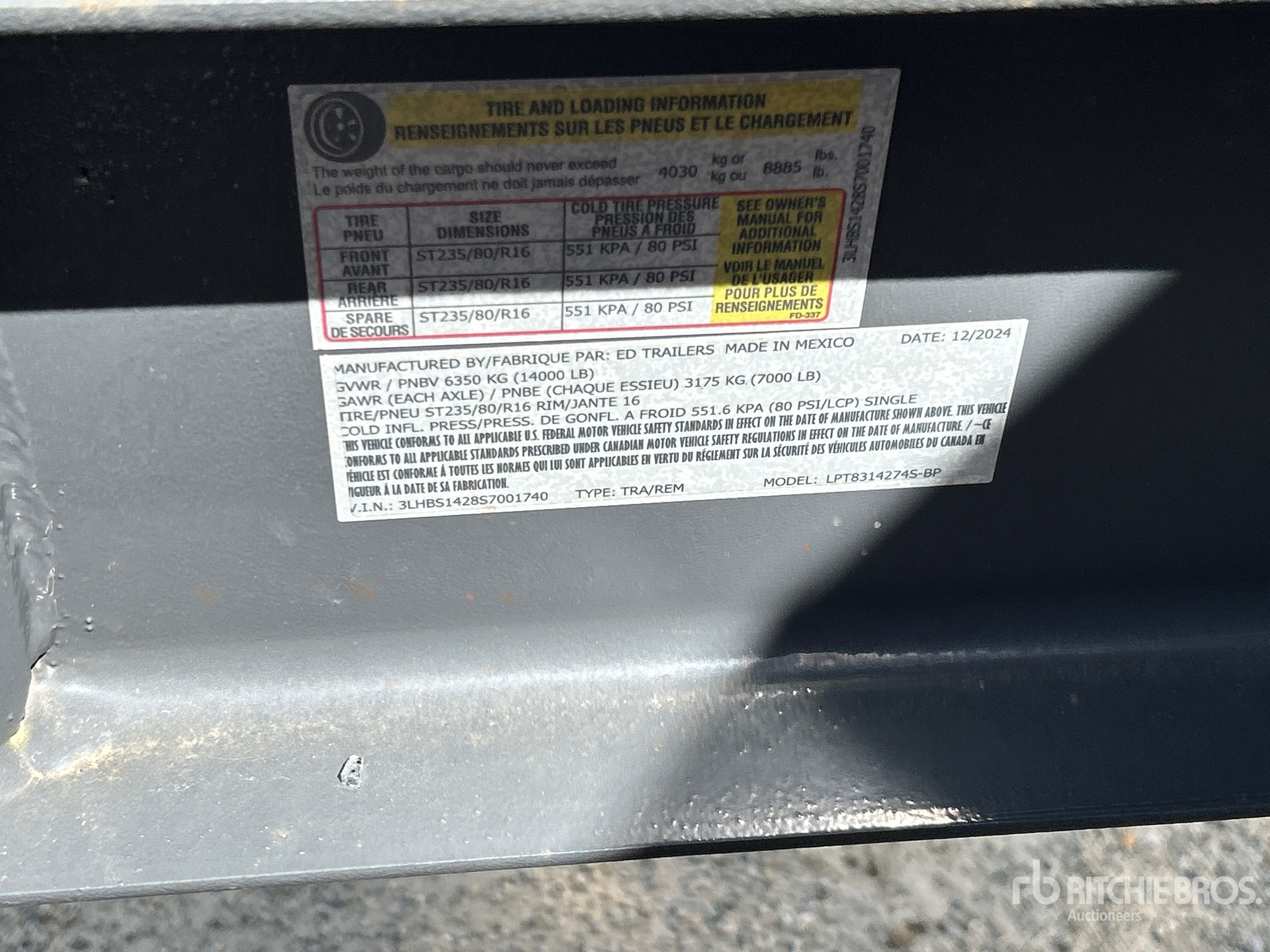 Les informations détaillées de l'équipement ont une portée limitée. Ritchie Bros. Auctioneers n'a inspecté aucun aspect ou composant de l'équipement autre que ceux expressément énoncés dans le présent document. Sauf indication expresse, nous ne faisons aucune déclaration ou garantie, expresse ou implicite, concernant l'équipement et/ou ses composants, y compris, sans s'y limiter, toute déclaration ou garantie concernant le fonctionnement, la conformité à toute norme ou exigence de sécurité de toute autorité ou tout organisme de réglementation applicable, l'adéquation à un usage particulier ou la qualité marchande. Nous vous conseillons fortement d'effectuer vous-même une inspection détaillée de l'équipement avant d'enchérir.