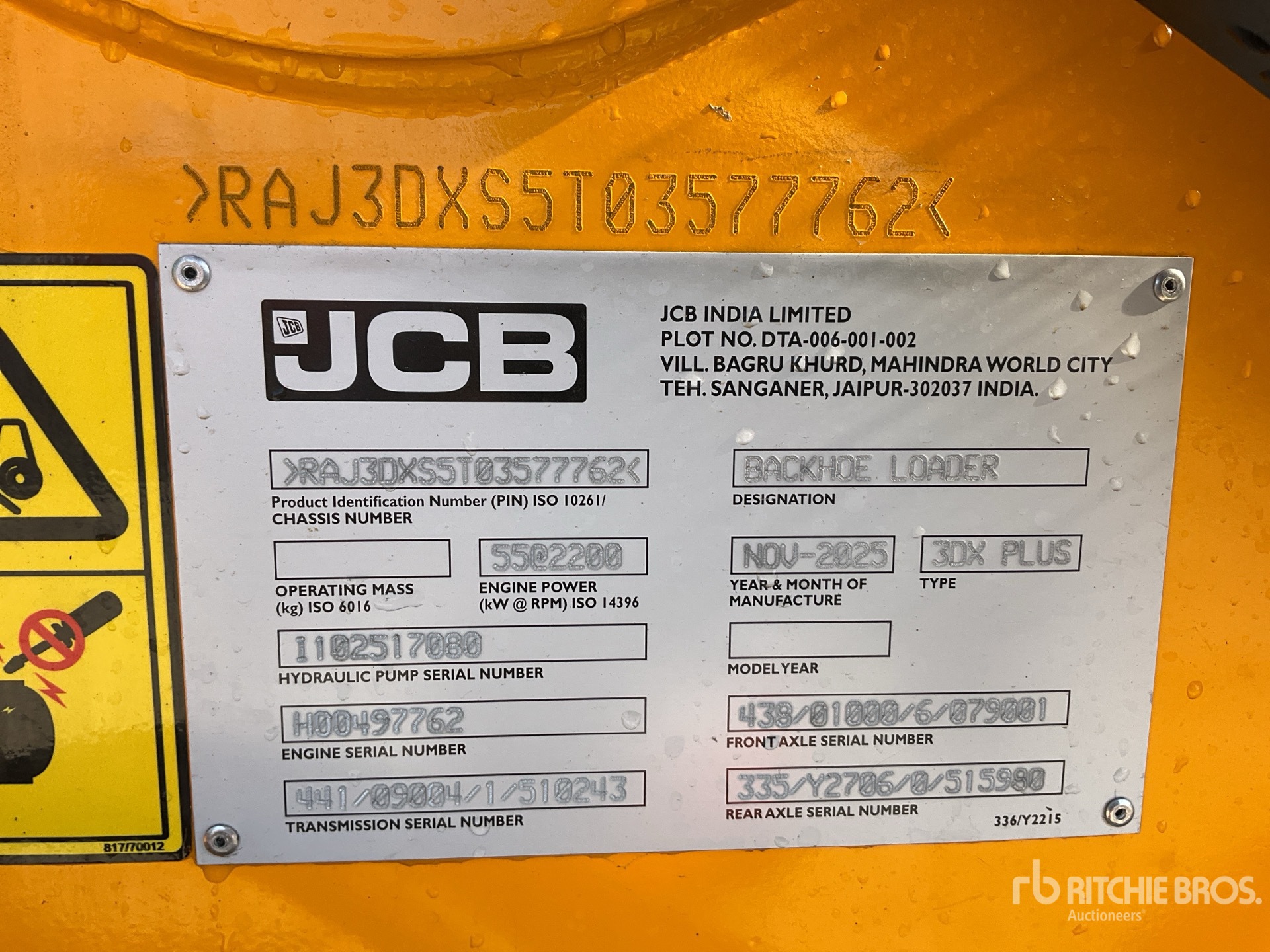 L'équipement n'a pas été testé avec charge ou utilisé dans toutes les situations applicables. Nous ne garantissons en aucun cas le bon fonctionnement de l'équipement conformément aux spécifications du fabricant. Aucune inspection n'a été effectuée pour vérifier tout aspect fonctionnel, sauf indication expresse dans le présent document. Seule une sélection de photos des composants individuels du train roulant sont à disposition, et peut ne pas indiquer l'état de l'ensemble de celui-ci.
