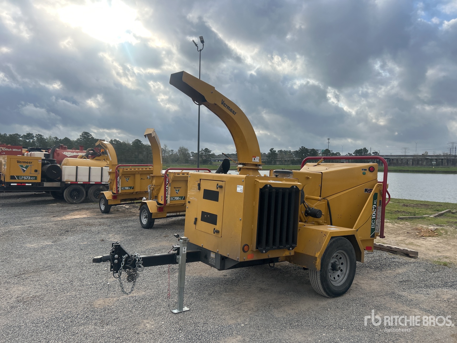 4 Cylinder Diesel Engine, 16 in Feed Opening, Swivel Discharge Chute, Ball Hitch Carrier Trailer, Electric Brakes