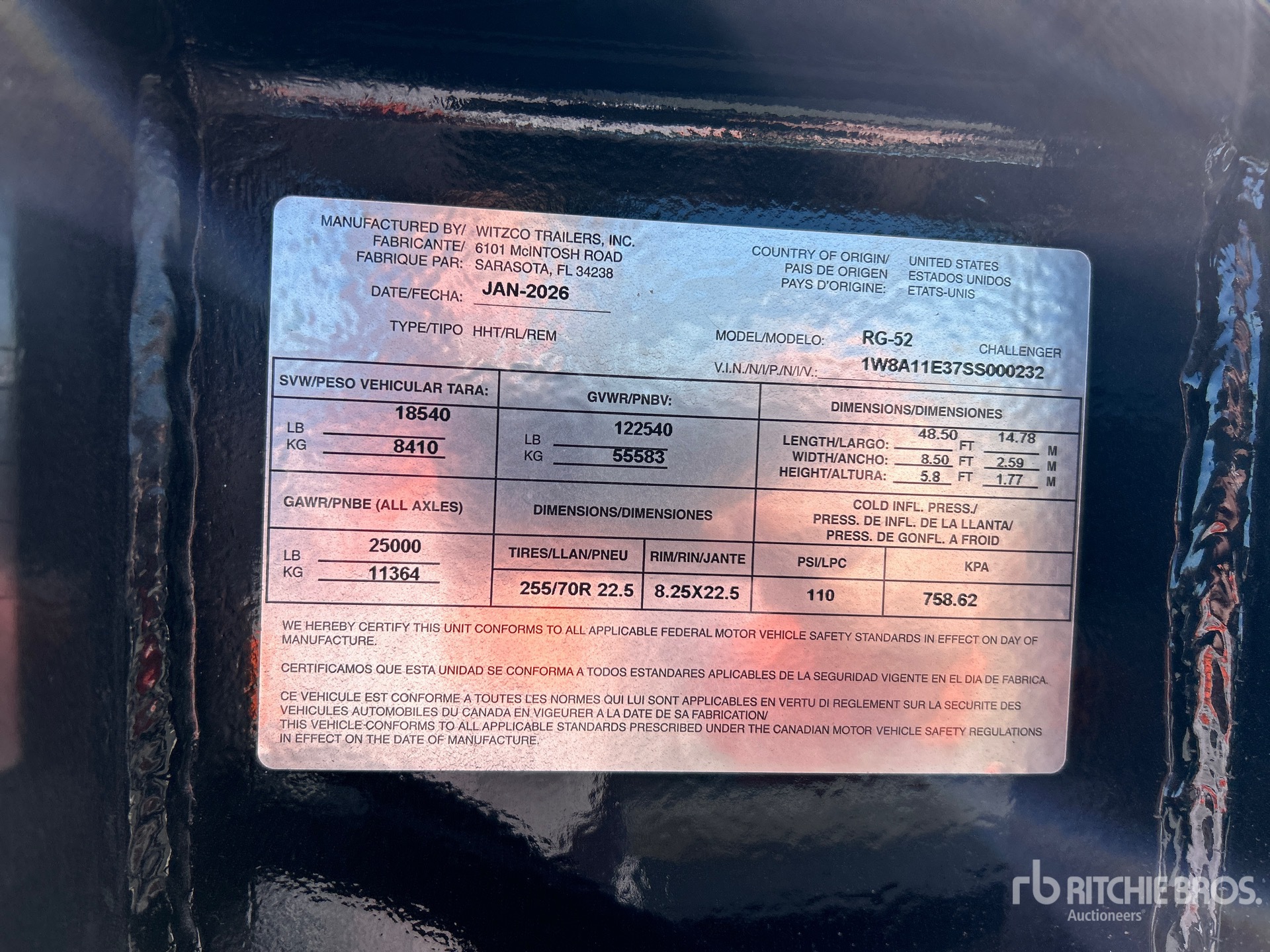 Les mesures sont fournies à titre d'estimation uniquement. Les dimensions réelles sous charge peuvent varier en fonction de la hauteur du camion/de la remorque et de la configuration/position de la machine chargée. Il incombe à l'acheteur de mesurer toutes les charges avant de quitter notre site de vente pour s'assurer que la charge peut être transportée en toute sécurité. Toutes les mesures doivent être vérifiées par l'acheteur. Ne vous fiez pas à ces mesures pour le transport.