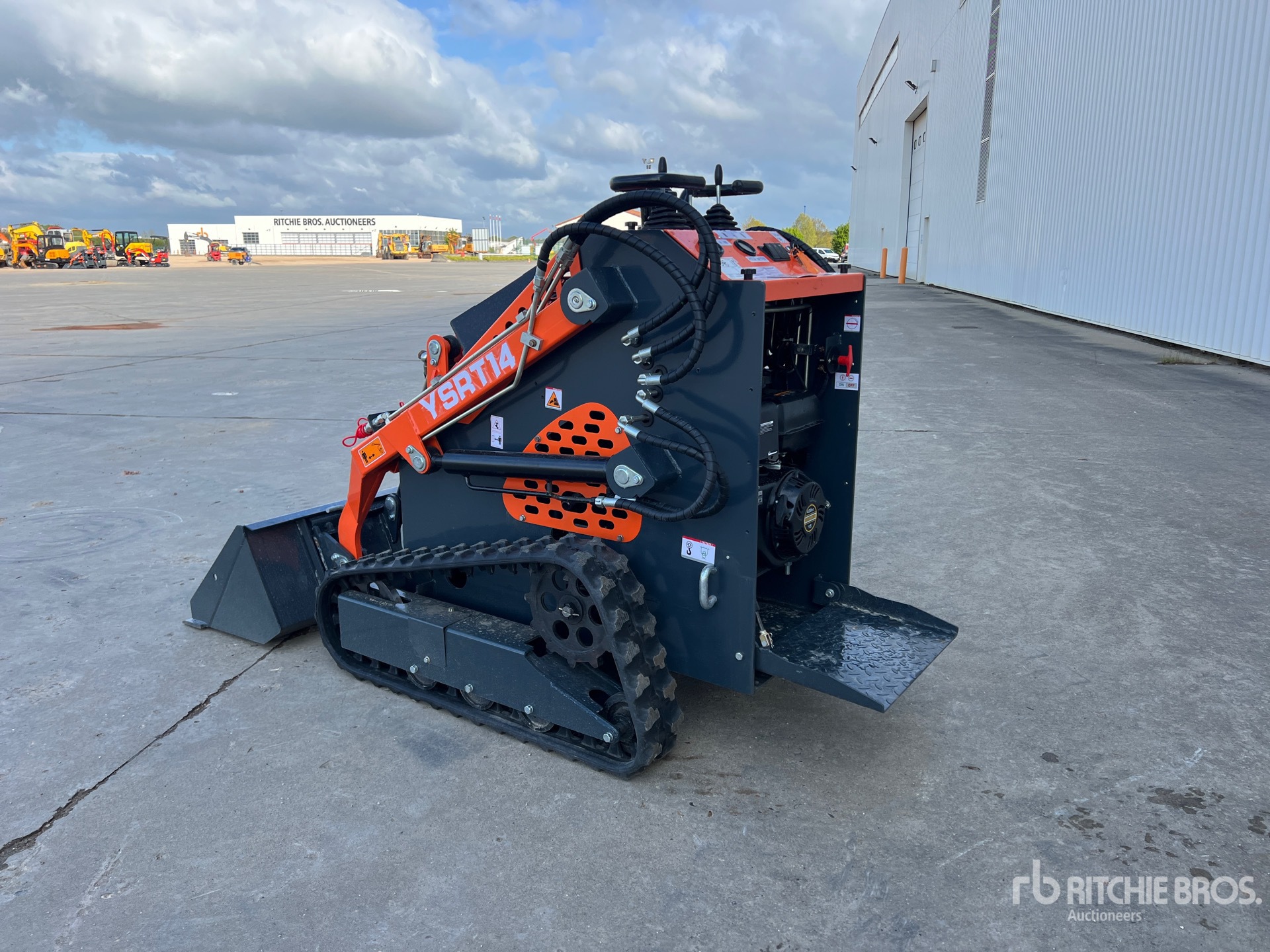 6 in Track Belts, Manual Quick Coupler, 38 in Bucket, Product images displayed are stock photos. Item is new/unused.