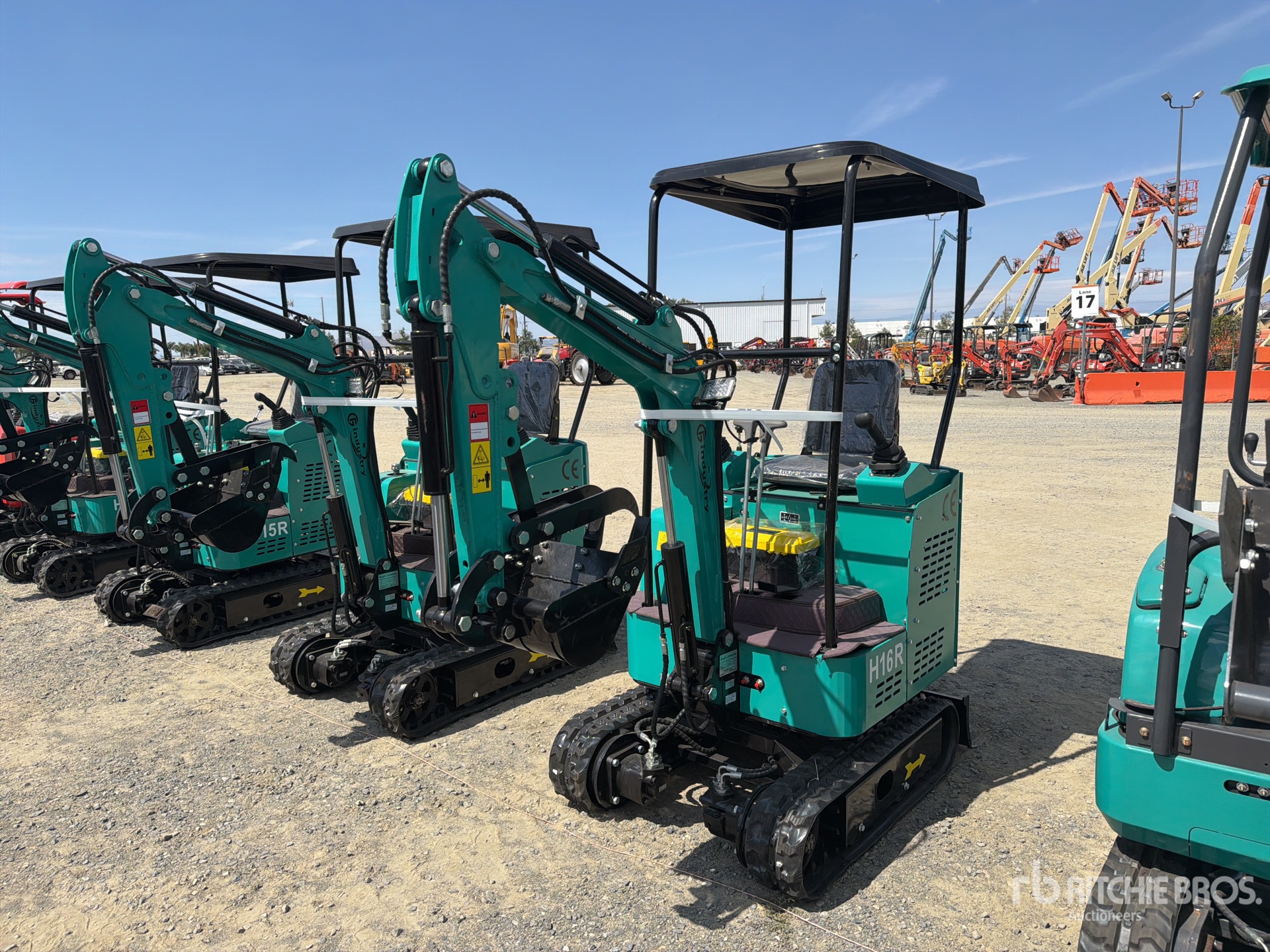 2 ft 7 in Stick, Auxiliary Hydraulic Plumbing, Backfill Blade, 7 in Rubber Tracks, 16 in Digging Bucket, Manual Thumb