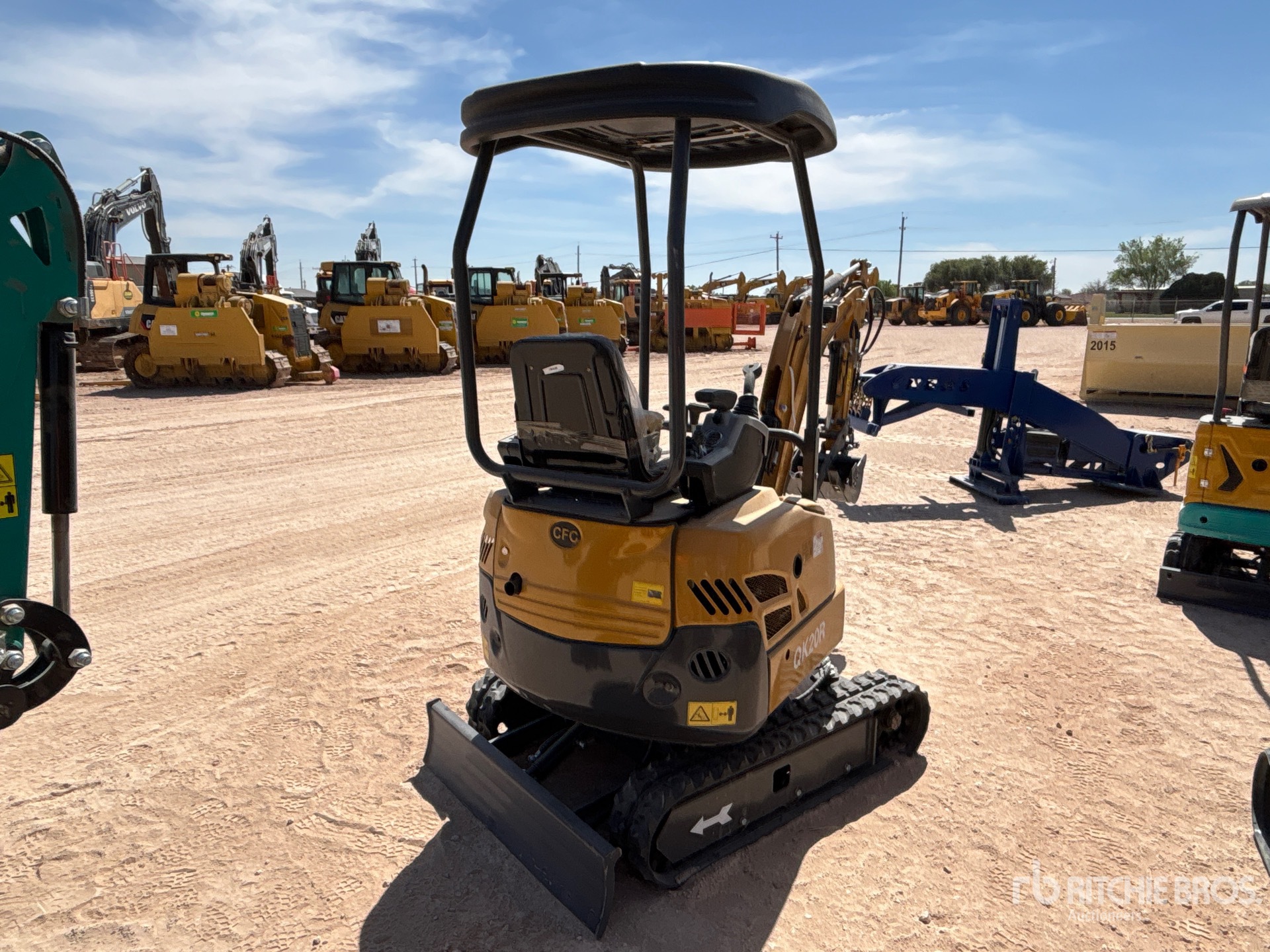 2025 US EPA Label, 2 ft 6 in Stick, Auxiliary Hydraulic Plumbing, Backfill Blade, 7 in Rubber Tracks, 18 in Digging Bucket, Hydraulic Thumb, Item is new/unused.