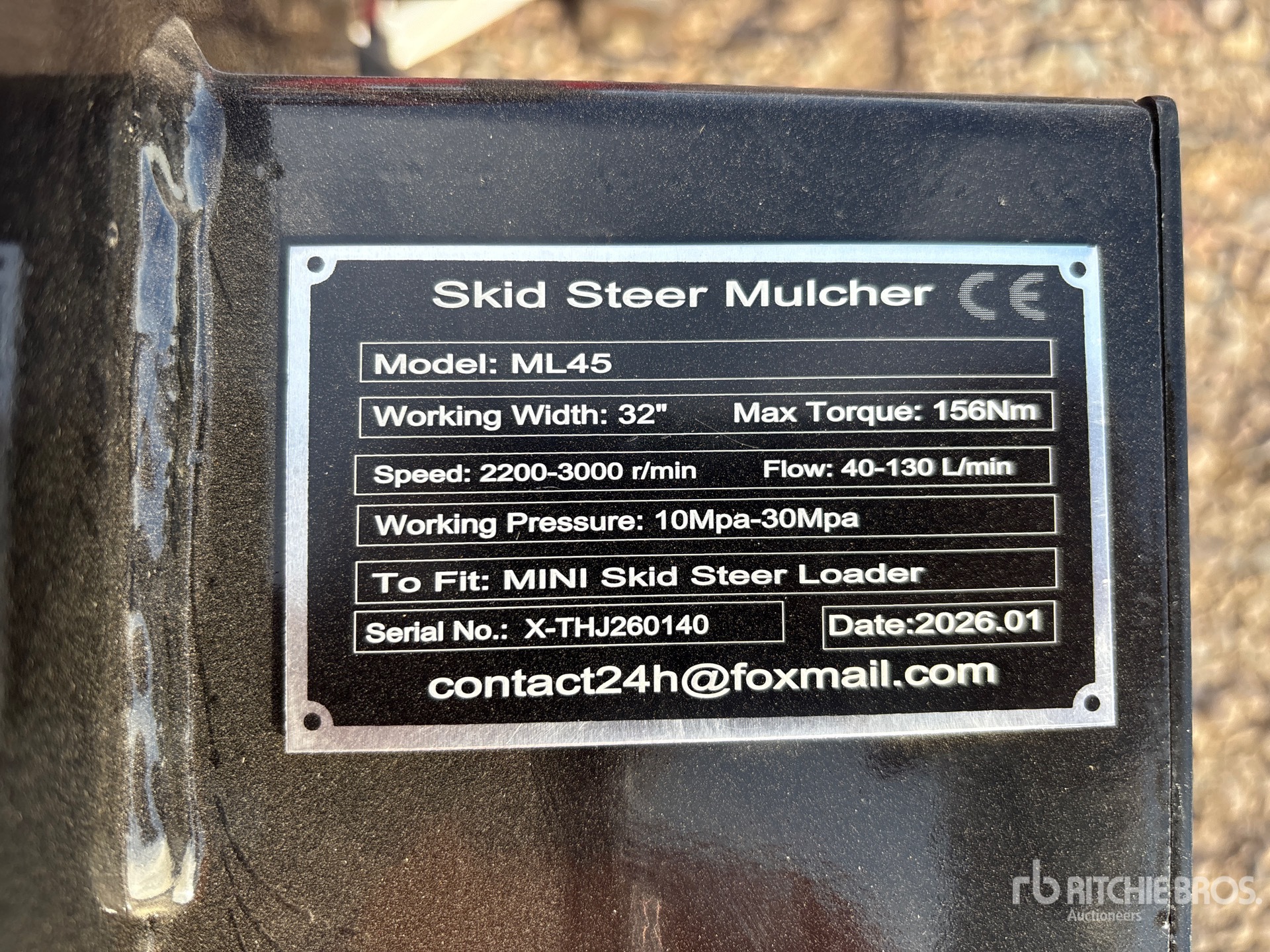Les informations détaillées de l'équipement ont une portée limitée. Ritchie Bros. Auctioneers n'a inspecté aucun aspect ou composant de l'équipement autre que ceux expressément énoncés dans le présent document. Sauf indication expresse, nous ne faisons aucune déclaration ou garantie, expresse ou implicite, concernant l'équipement et/ou ses composants, y compris, sans s'y limiter, toute déclaration ou garantie concernant le fonctionnement, la conformité à toute norme ou exigence de sécurité de toute autorité ou tout organisme de réglementation applicable, l'adéquation à un usage particulier ou la qualité marchande. Nous vous conseillons fortement d'effectuer vous-même une inspection détaillée de l'équipement avant d'enchérir.