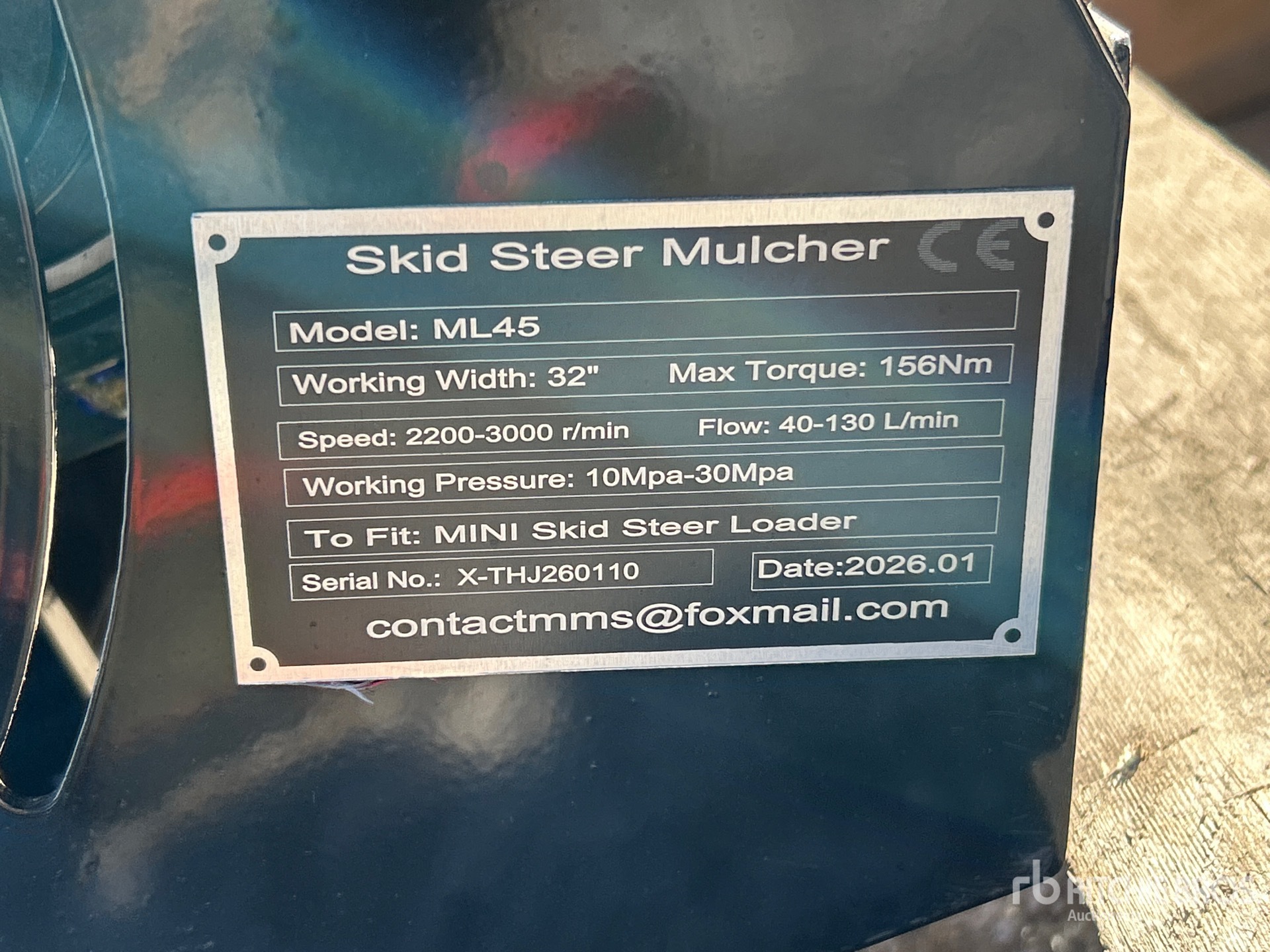 Les informations détaillées de l'équipement ont une portée limitée. Ritchie Bros. Auctioneers n'a inspecté aucun aspect ou composant de l'équipement autre que ceux expressément énoncés dans le présent document. Sauf indication expresse, nous ne faisons aucune déclaration ou garantie, expresse ou implicite, concernant l'équipement et/ou ses composants, y compris, sans s'y limiter, toute déclaration ou garantie concernant le fonctionnement, la conformité à toute norme ou exigence de sécurité de toute autorité ou tout organisme de réglementation applicable, l'adéquation à un usage particulier ou la qualité marchande. Nous vous conseillons fortement d'effectuer vous-même une inspection détaillée de l'équipement avant d'enchérir.