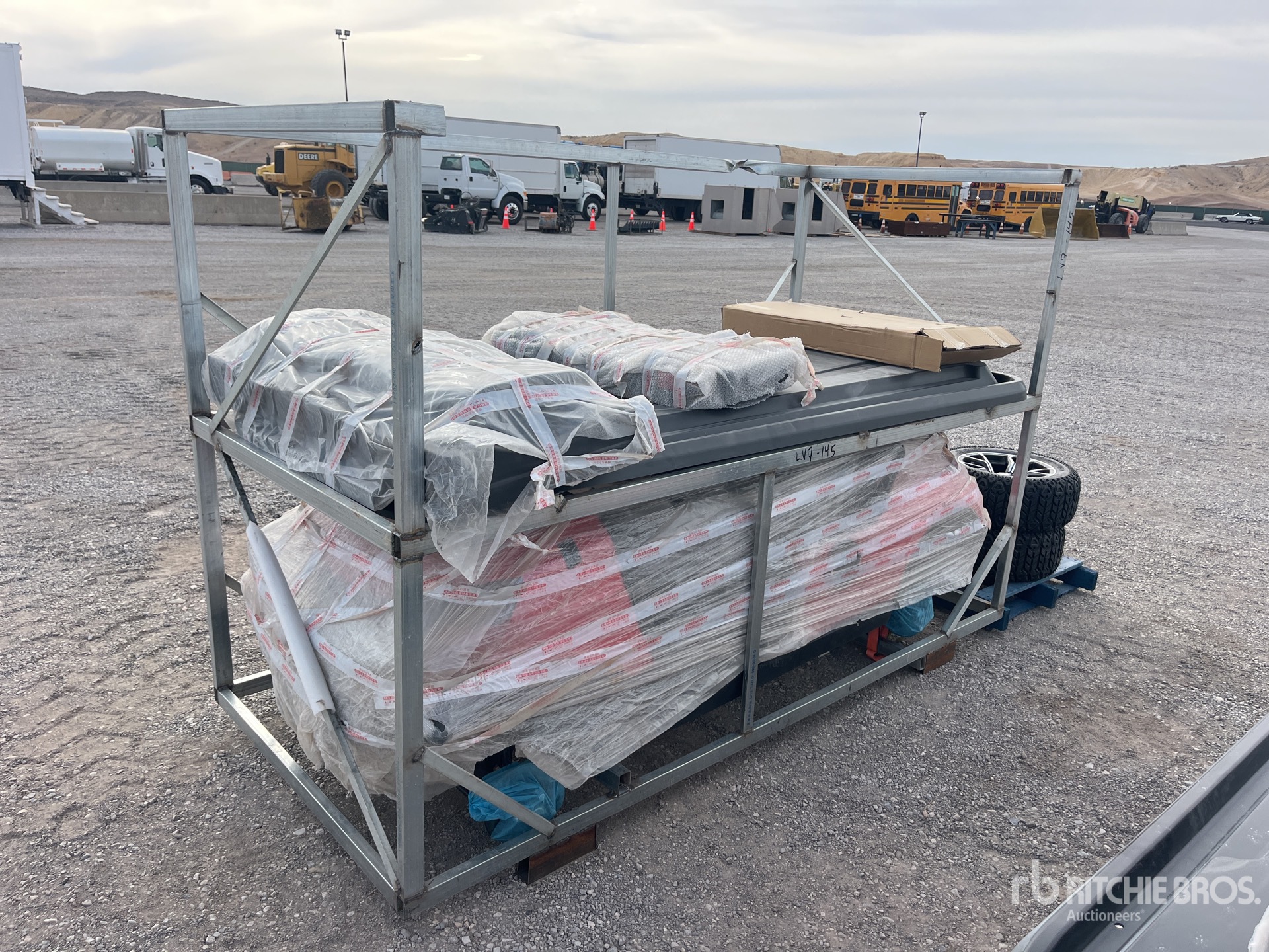 L'équipement n'a pas été testé avec charge ou utilisé dans toutes les situations applicables. Nous ne garantissons en aucun cas le bon fonctionnement de l'équipement conformément aux spécifications du fabricant. Aucune inspection n'a été effectuée pour vérifier tout aspect fonctionnel, sauf indication expresse dans le présent document. Seule une sélection de photos des composants individuels du train roulant sont à disposition, et peut ne pas indiquer l'état de l'ensemble de celui-ci.