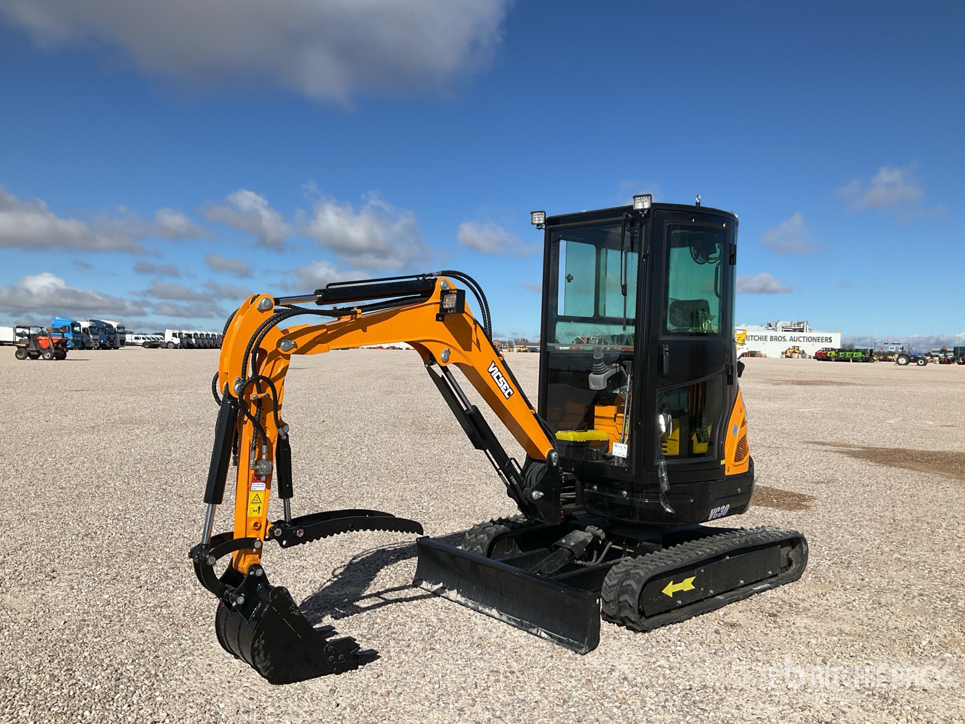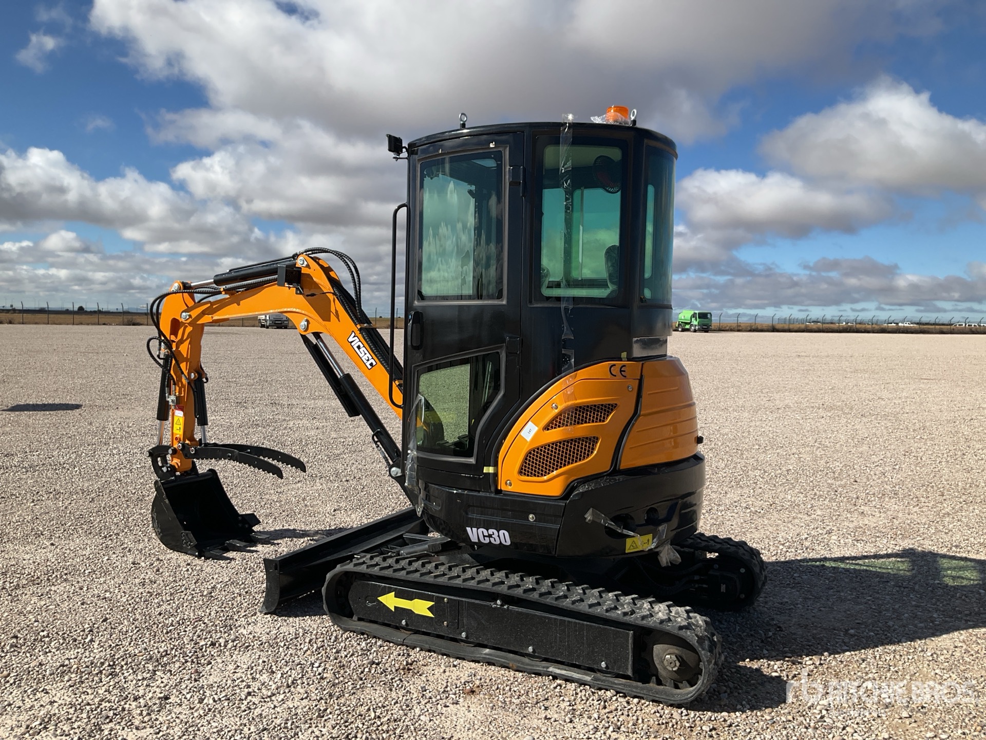 Enclosed Cab, Swing Boom, Auxiliary Hydraulic Plumbing, Backfill Blade, Rubber Tracks, Digging Bucket, Hydraulic Thumb
